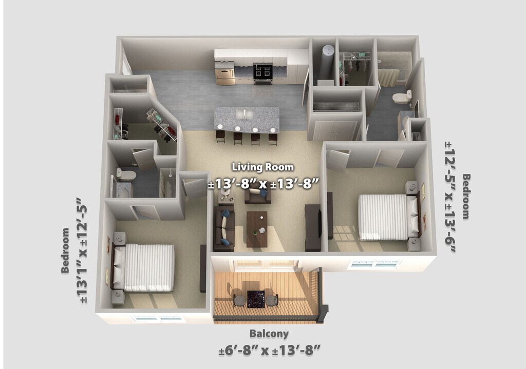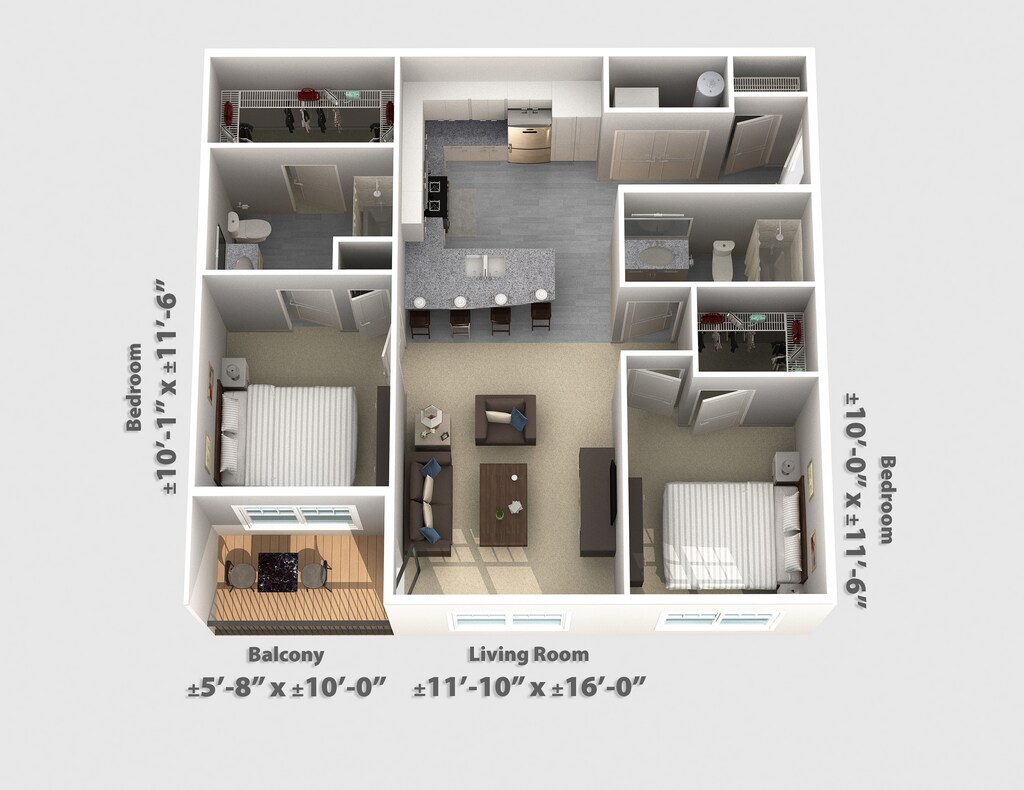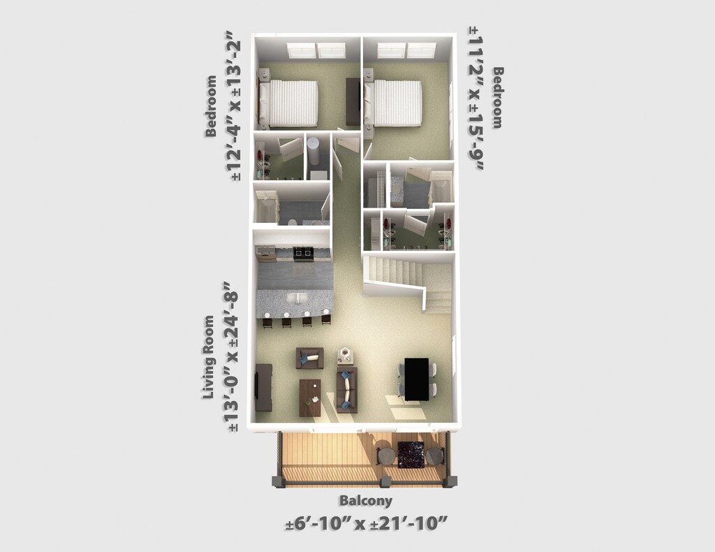 2 Dormitorios, 2 Baños, 1083 pies²Disponible AhoraGalería del Modelo