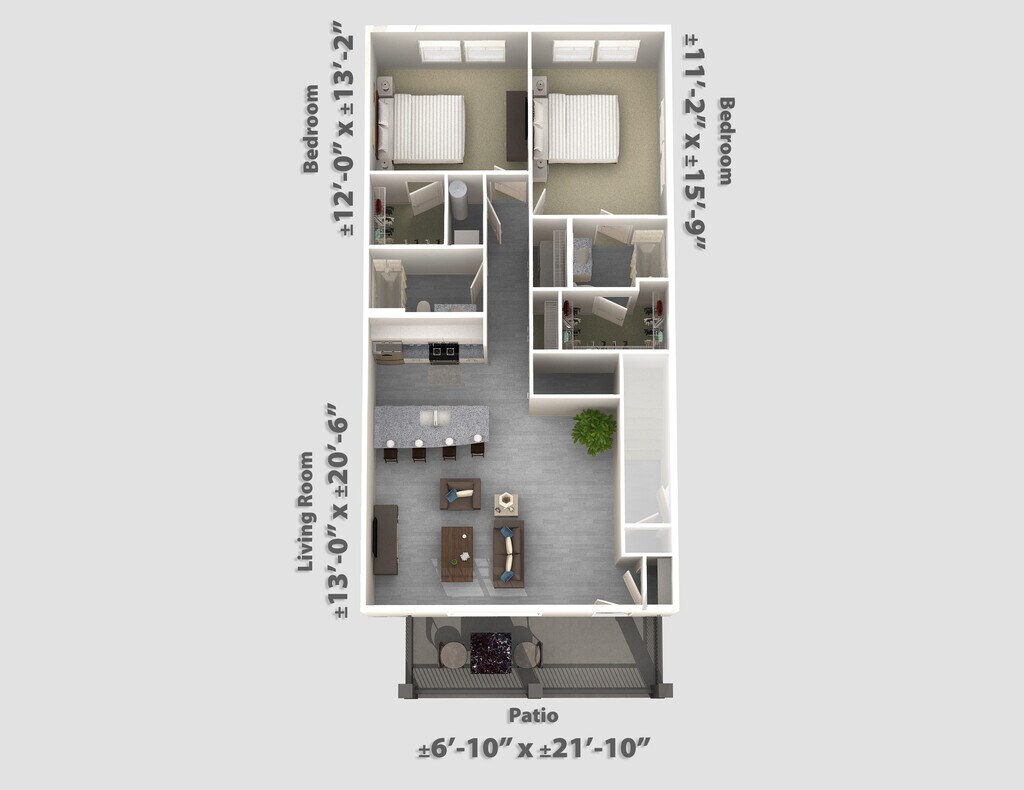 2 Dormitorios, 2 Baños, 1111 pies²Disponible AhoraGalería del Modelo