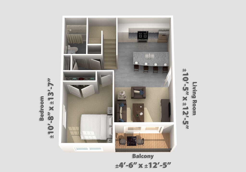 1 Dormitorio, 1 Baño, 719 pies²Disponible AhoraEl más grandeEsta opción tiene las unidades más grandes para este modeloGalería del Modelo