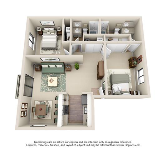Modelo de apartamento: AlderDesde $1,6232 Dormitorios, 1 Baño, 800 sq ftDisponible AhoraPlanosFotos![]()
