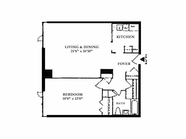 1 Dormitorio, 1 Baño, 1200 pies²Disponible AhoraGalería del Modelo