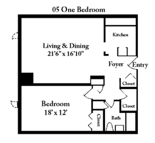 Clay - Plano 1 Unidad de apartamento: 301WModelo de apartamento: ClayDesde $1,6001 Dormitorio, 1 Baño, 1200 sq ftDisponible AhoraMonroe