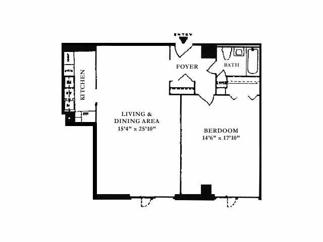 1 Dormitorio, 1 Baño, 915 pies²Disponible Dec 15Galería del Modelo
