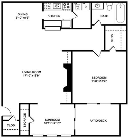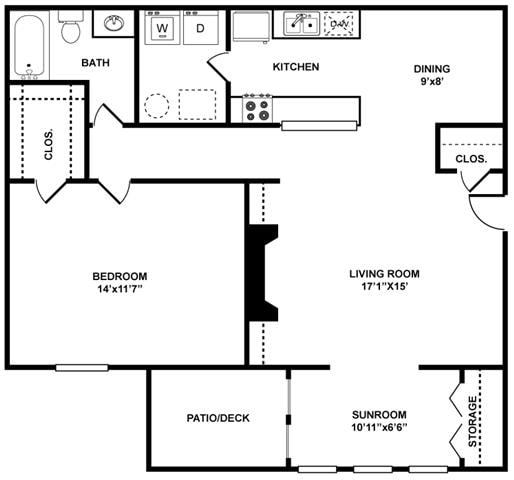 Modelo de apartamento: The Filmore1 Dormitorio, 1 Baño, 1005 sq ftDisponible Ahora![]()