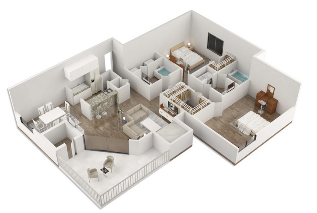 1 Dormitorio, 1 Baño, 795 pies²Disponible AhoraGalería del Modelo