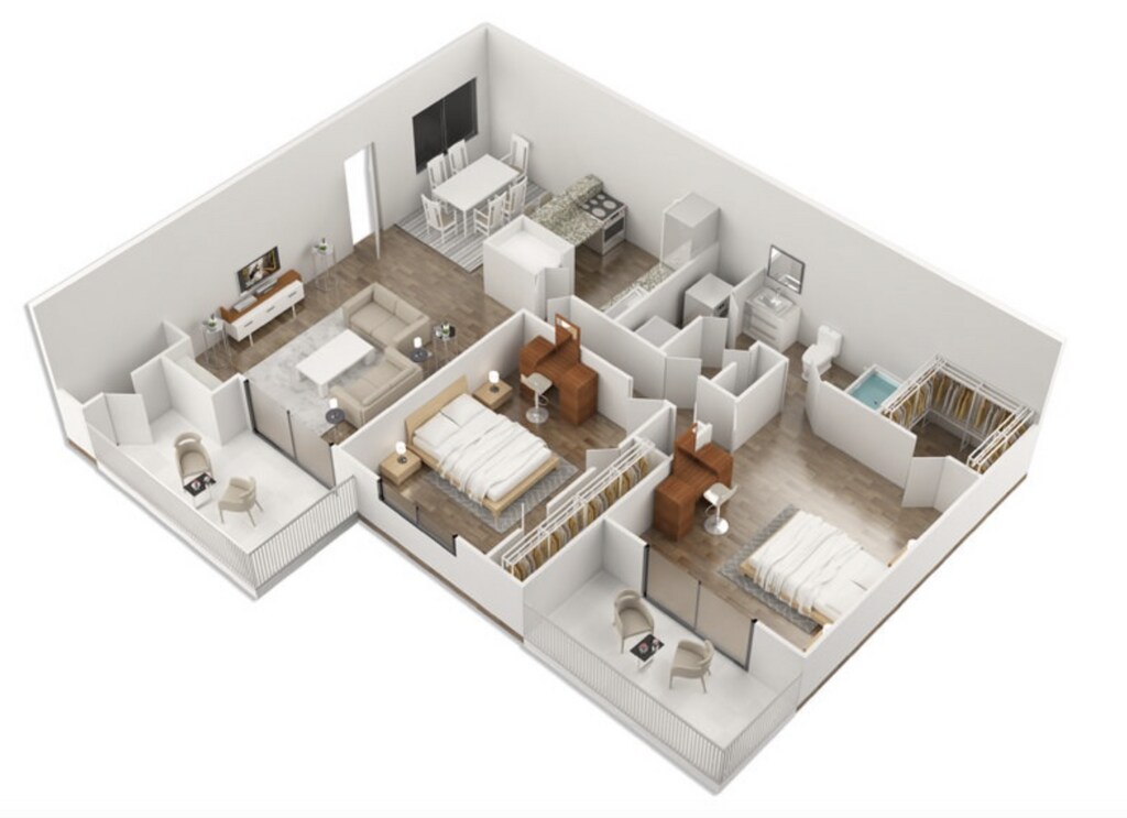 2 Dormitorios, 2 Baños, 1079 pies²Disponible AhoraGalería del Modelo