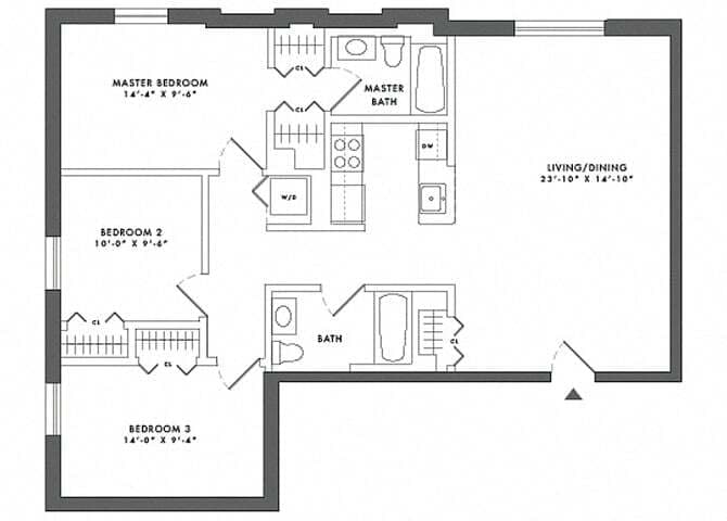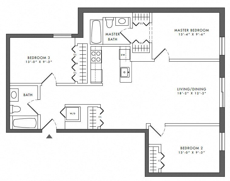 Modelo de apartamento: 2 Bed/1 BathLlame para Precios2 Dormitorios, 1 Baño, 810 sq ftNo Disponible![]()