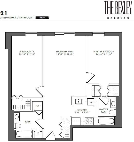 The Bexley se encuentra en el Barrio Uptown Hoboken y el código postal 07030 de Hoboken, NJ. Esta comunidad está gestionada profesionalmente por Bozzuto Management Company