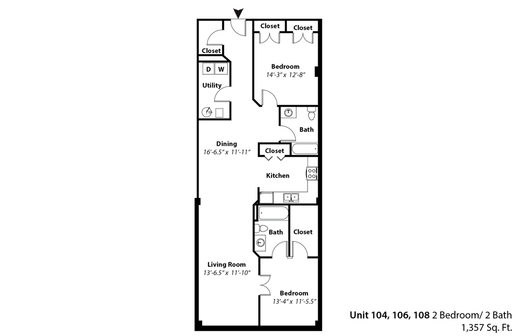 2 Dormitorios, 1 Baño, 1357 pies²Galería del Modelo