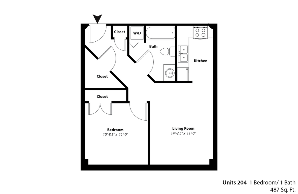 1 Dormitorio, 1 Baño, 487 pies²Galería del Modelo