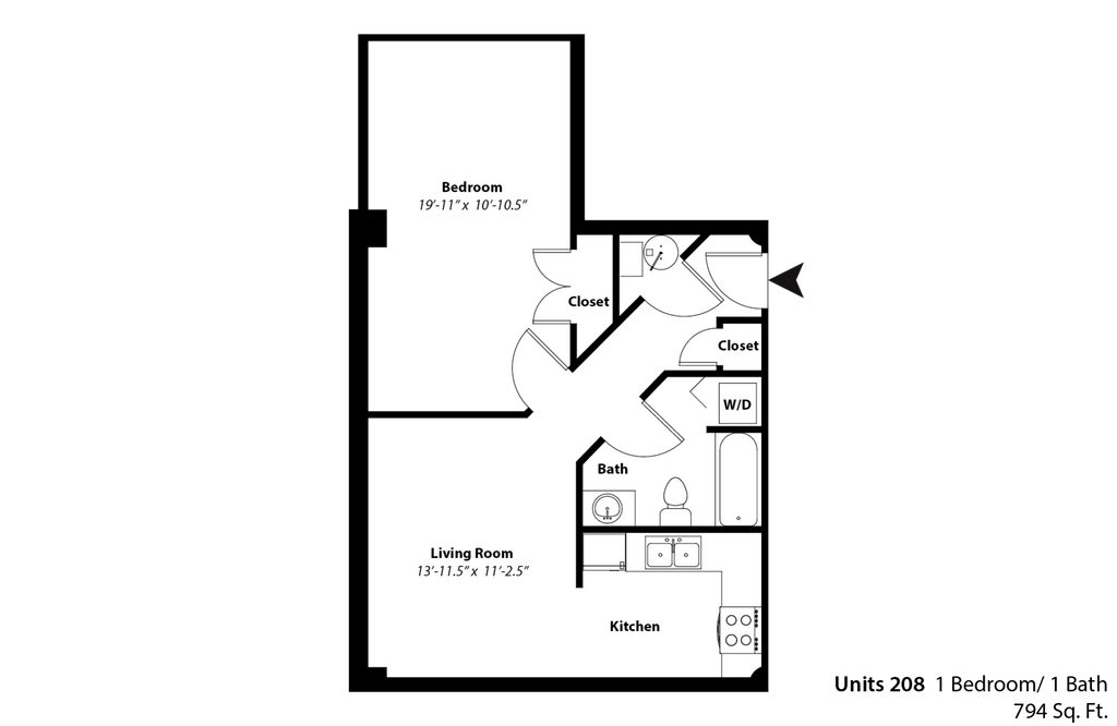 1 Dormitorio, 1 Baño, 794 pies²Galería del Modelo