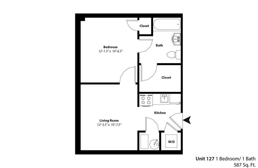 1 Dormitorio, 1 Baño, 587 pies²Galería del Modelo