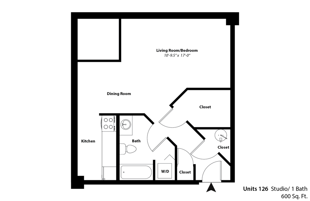 Estudio, 1 Baño, 600 pies²Galería del Modelo