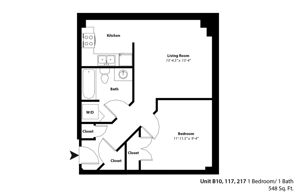 1 Dormitorio, 1 Baño, 548 pies²Más CargosDisponible Apr 4Galería del Modelo