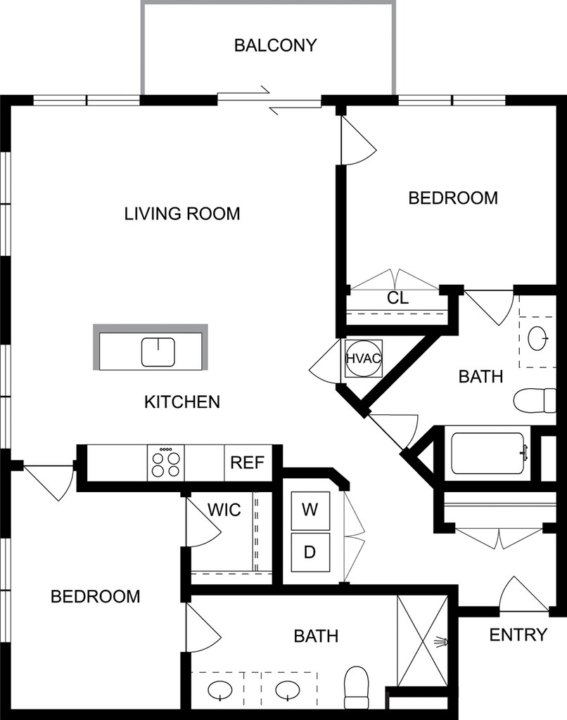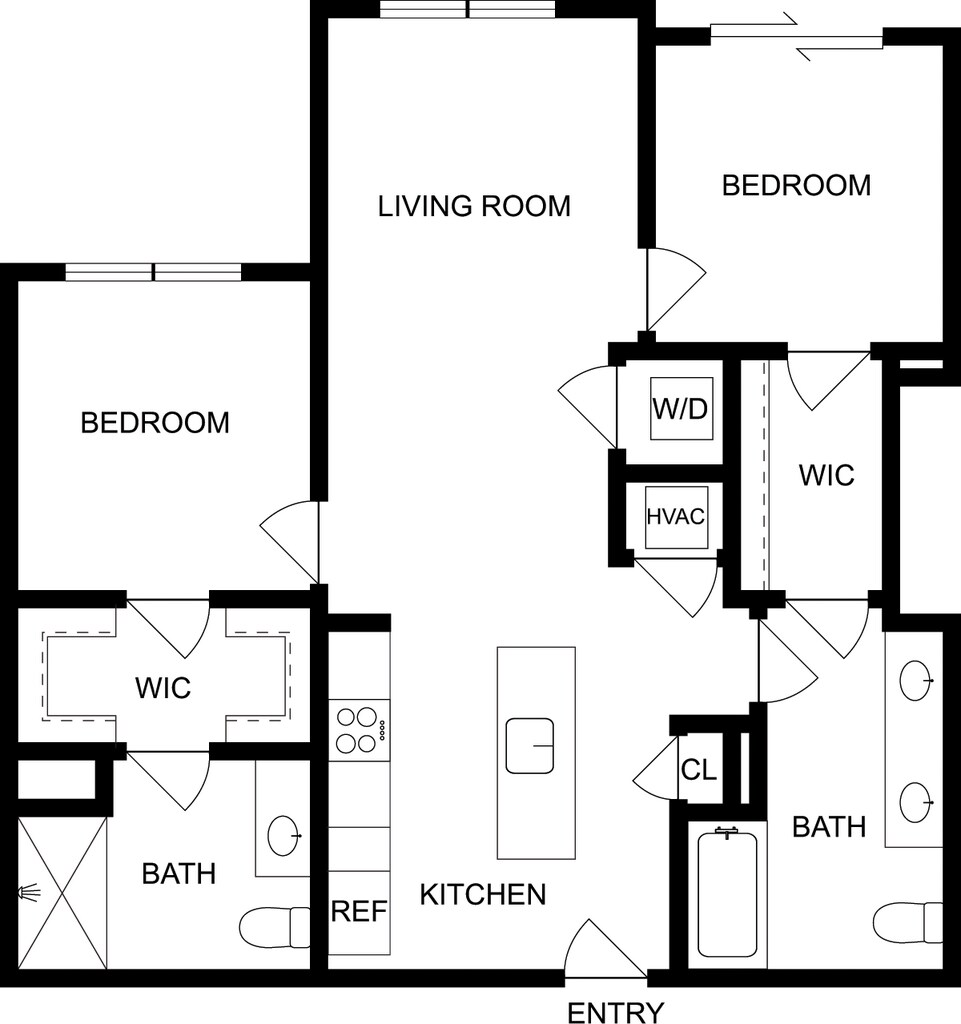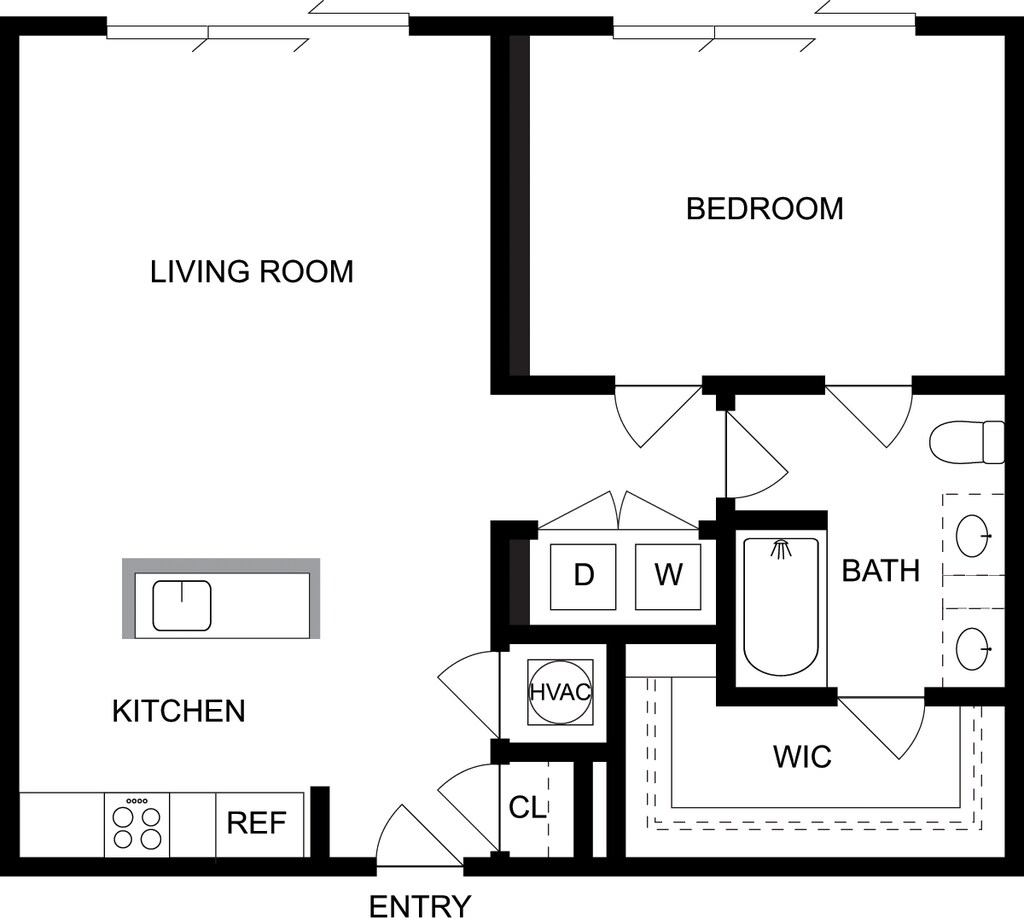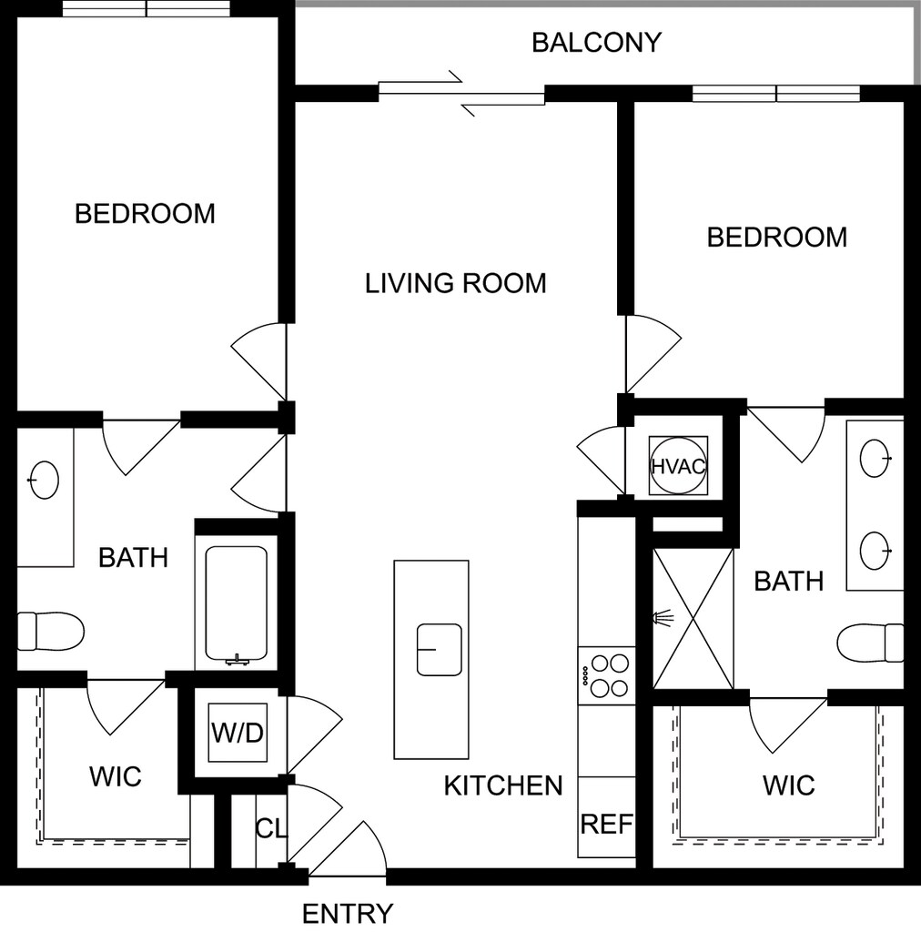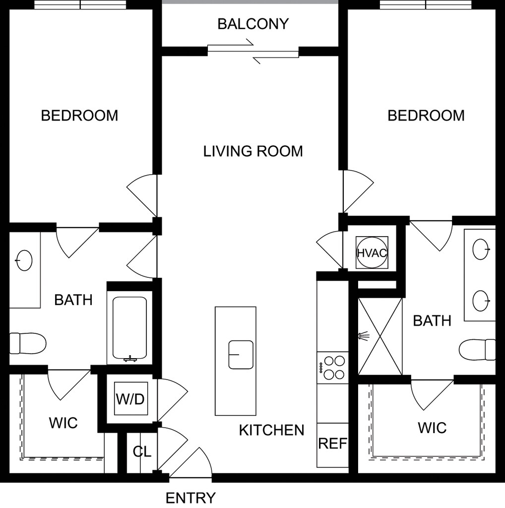 Modelo de apartamento: A05Desde $1,5401 Dormitorio, 1 Baño, 763 sq ftDisponible Ahora![]()
