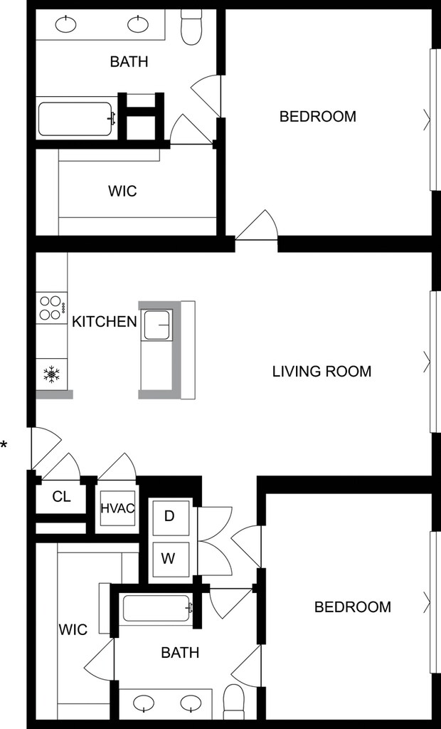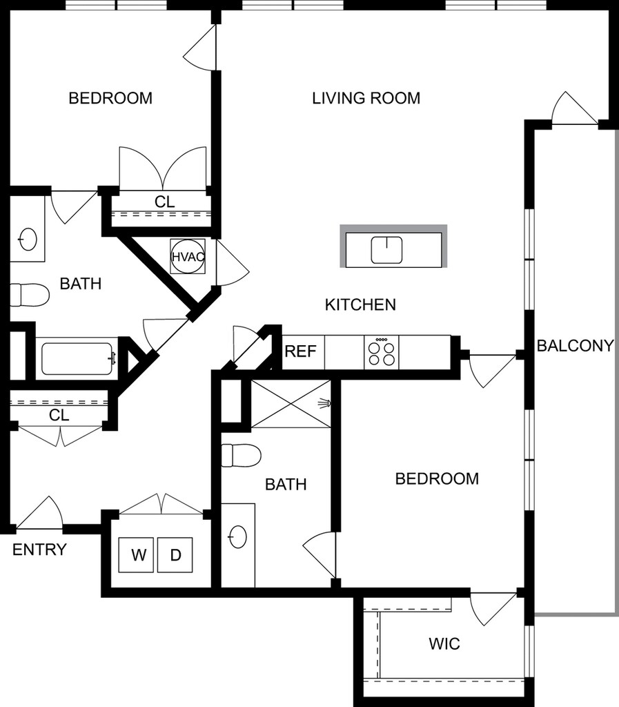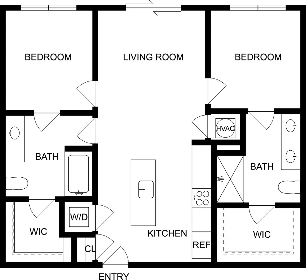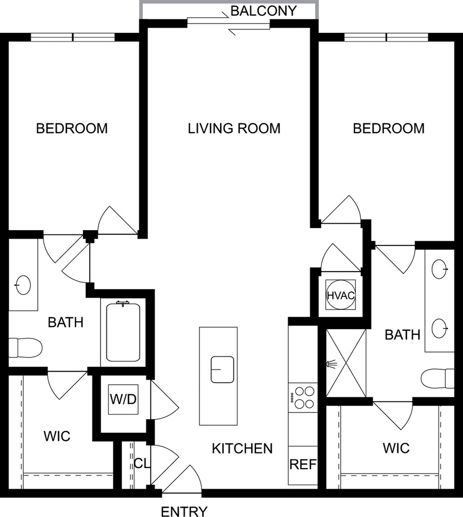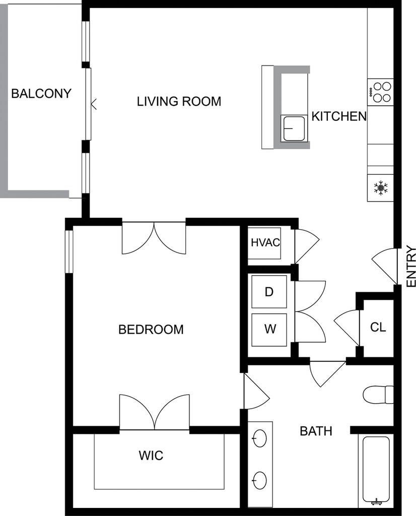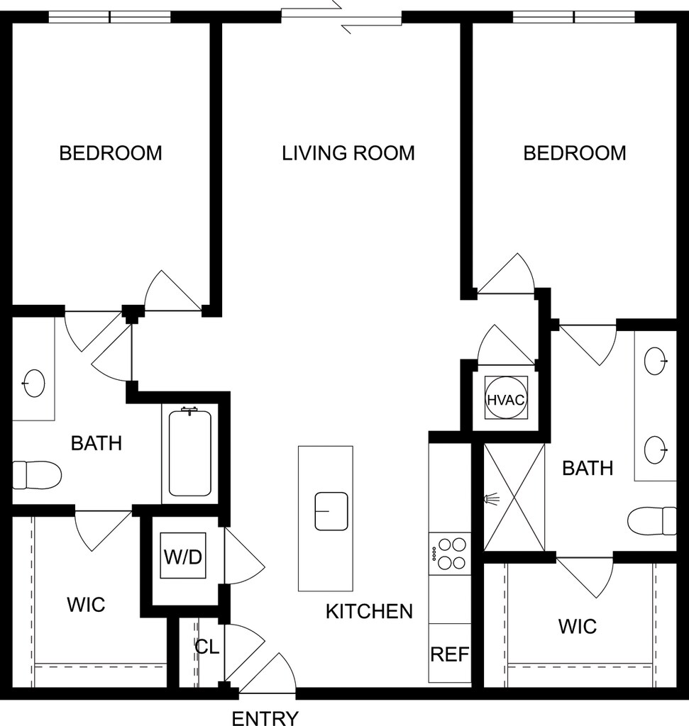 Modelo de apartamento: A05Desde $1,5401 Dormitorio, 1 Baño, 763 sq ftDisponible Ahora![]()