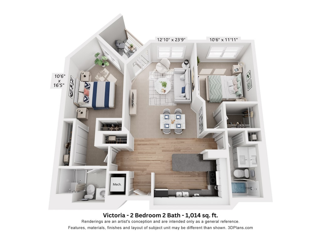 Victoria - 2BR 2B - Imagen 1 Los planos son representaciones artísticas. Todas las dimensiones son aproximadas. El producto y las especificaciones reales pueden variar en tamaño o detalle. No todas las características están disponibles en cada vivienda en alquiler. Por favor, consulta con un representante para obtener más detalles.