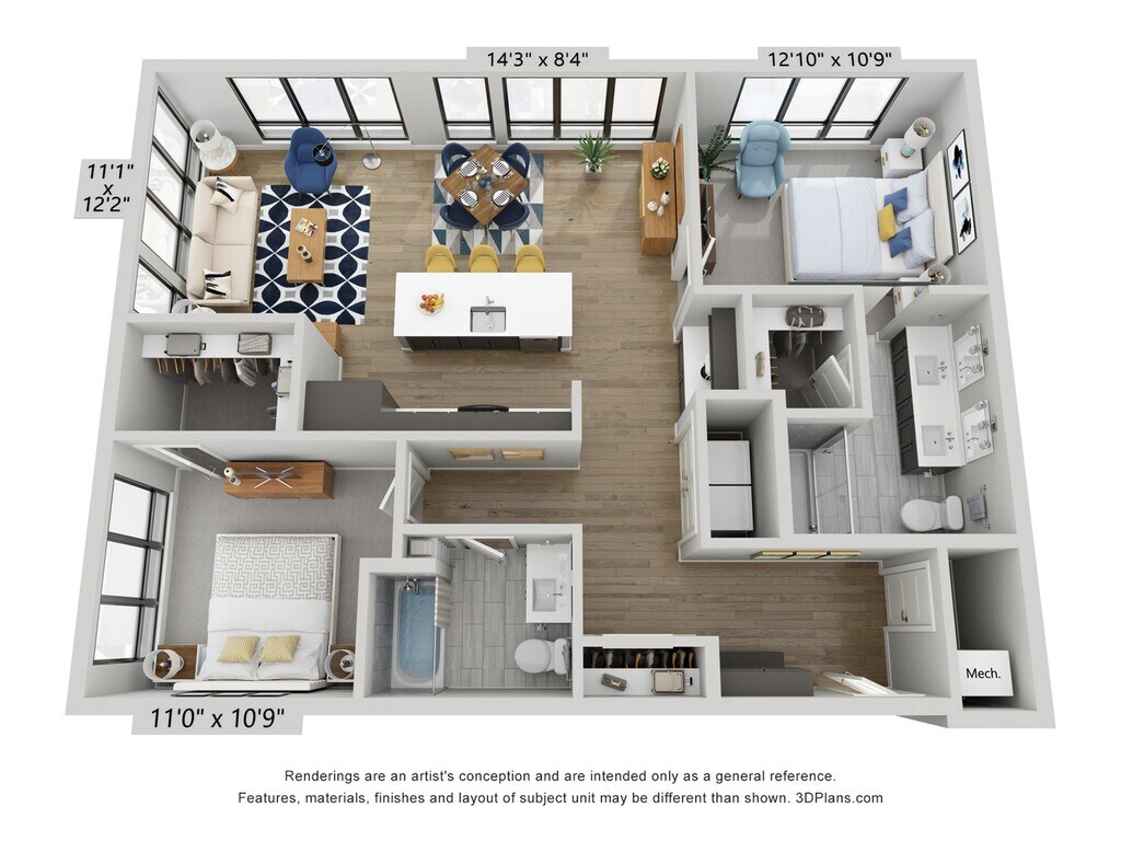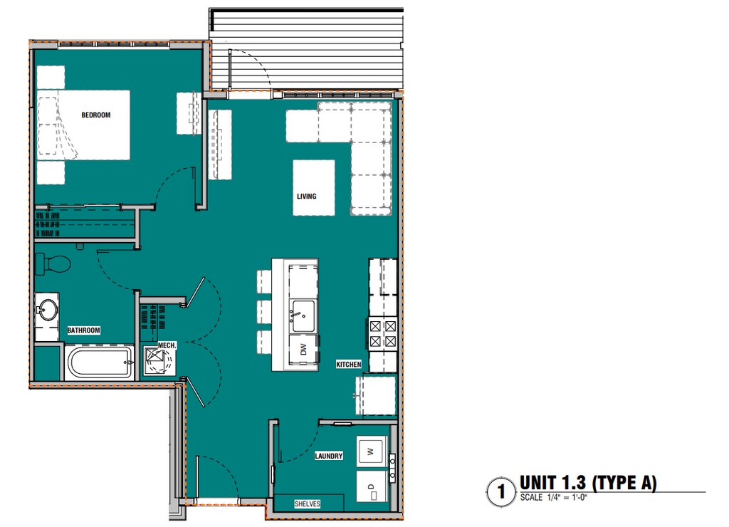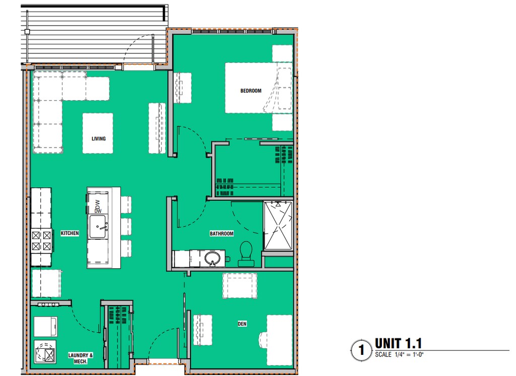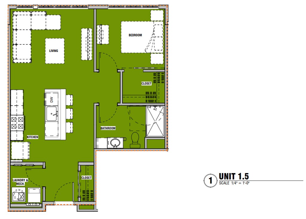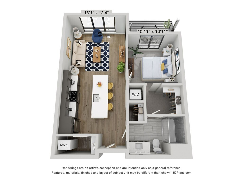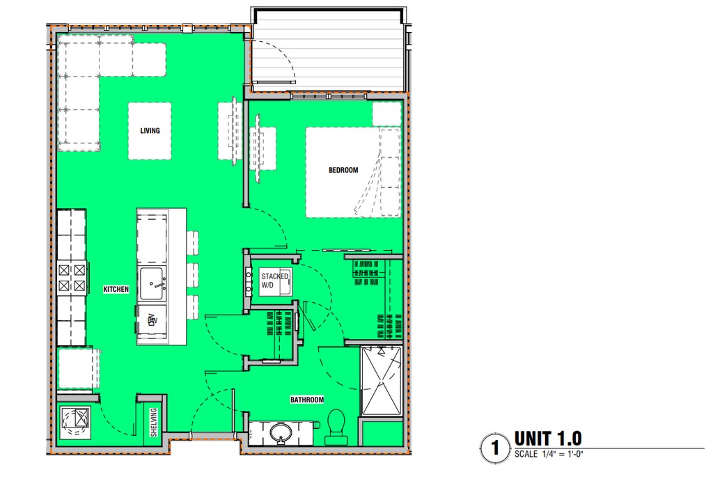 1 Dormitorio, 1 Baño, 754 pies²Disponible AhoraGalería del Modelo