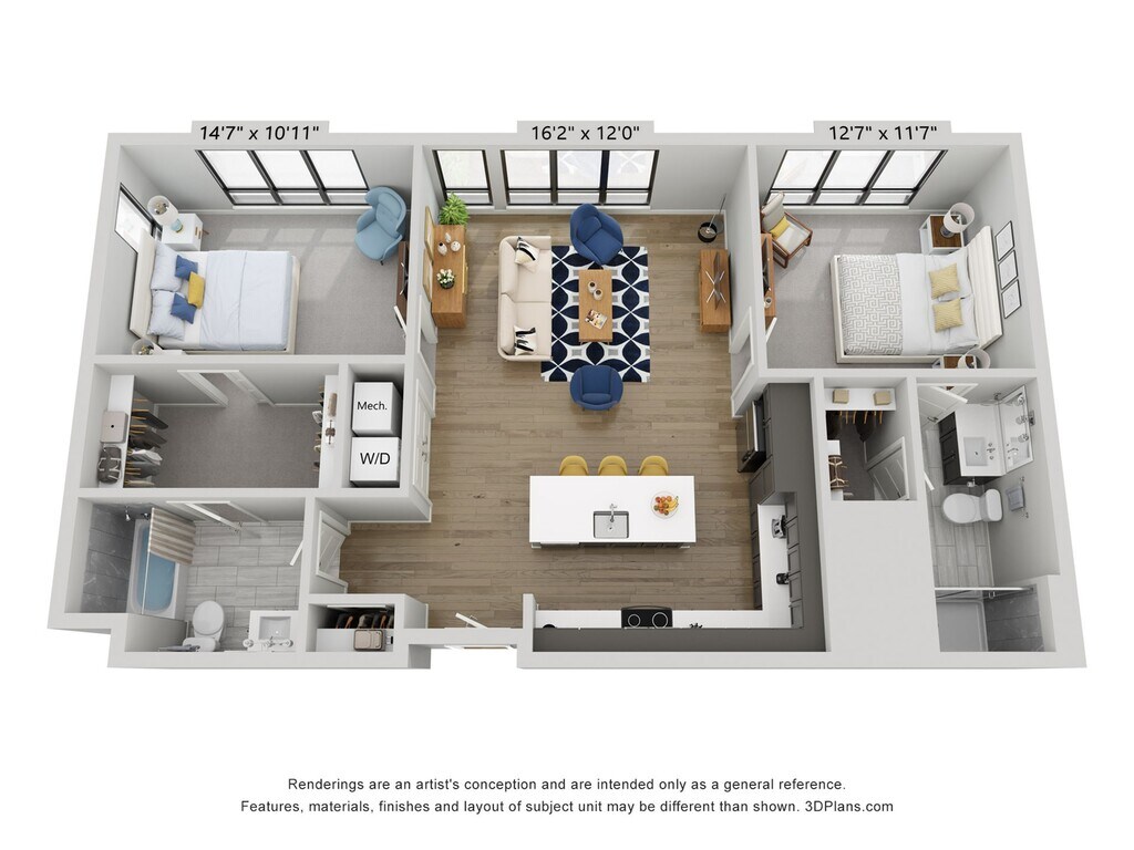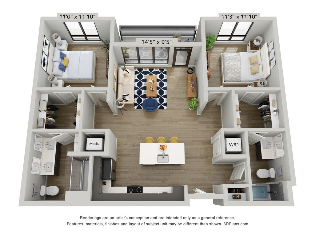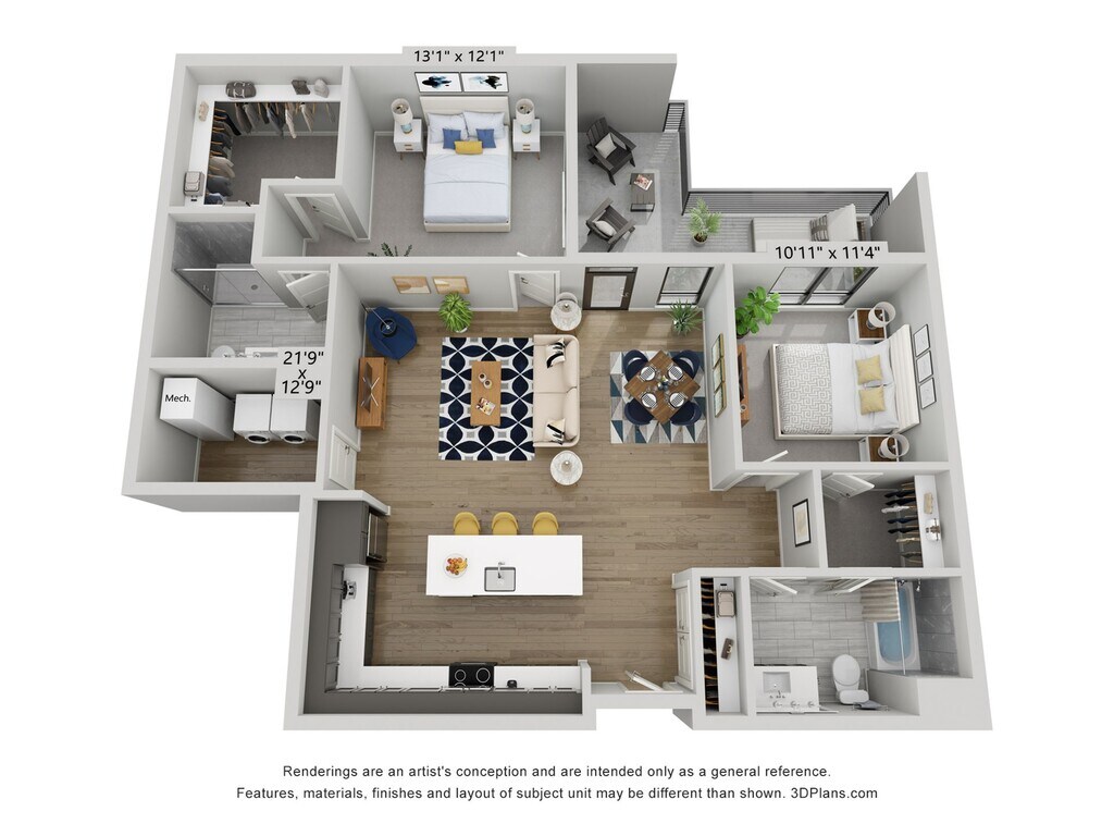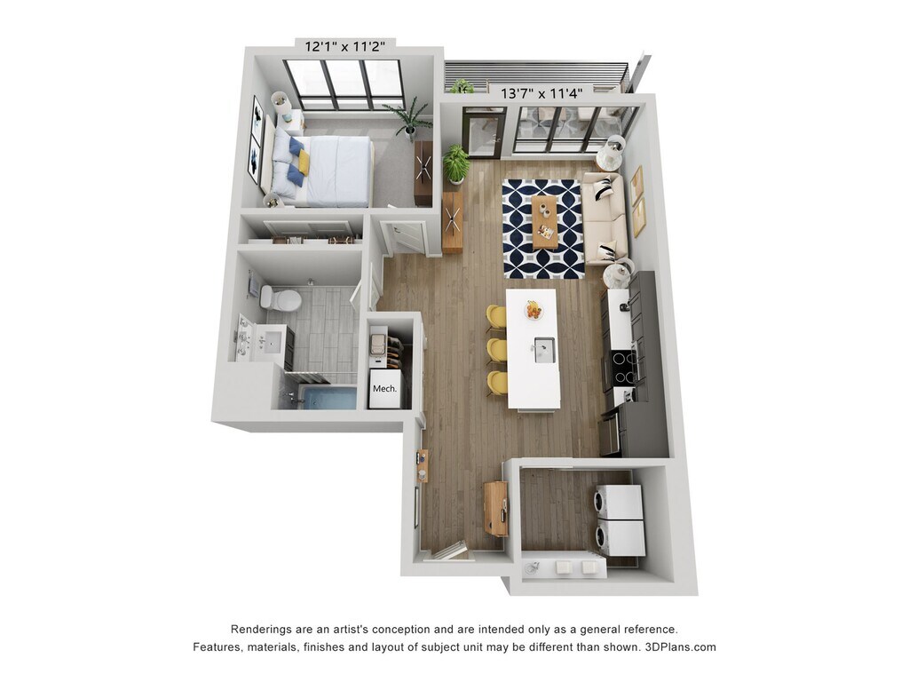 1 Dormitorio, 1 Baño, 863 pies²Disponible February 6, 2026Galería del Modelo