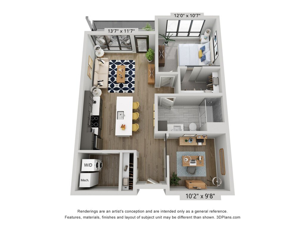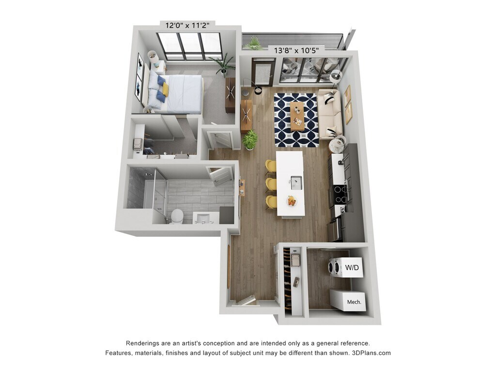 The Ivory - Plano 2 Unidad de apartamento: 1355-308Modelo de apartamento: The Ivory$1,7451 Dormitorio, 1 Baño, 754 sq ftDisponible AhoraThe Periwinkle