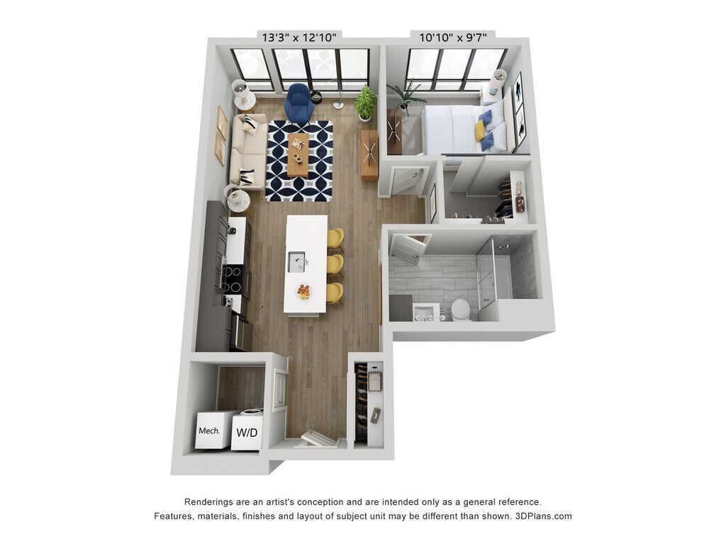 Estudio, 1 Baño, 564 pies²Disponible AhoraGalería del Modelo