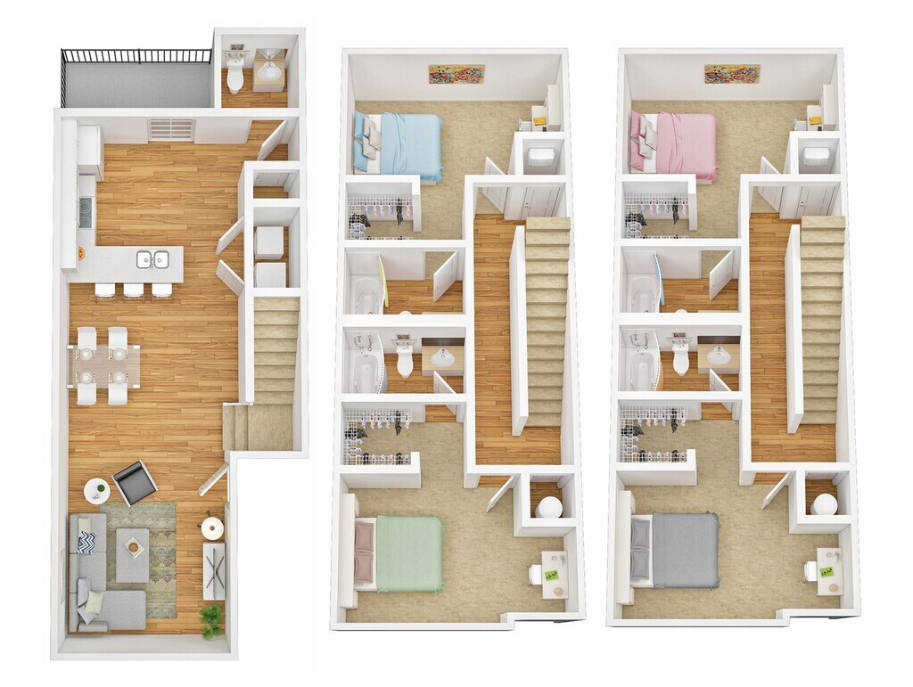 3 Dormitorios, 3 Baños, 1233 pies²Disponible AhoraGalería del Modelo