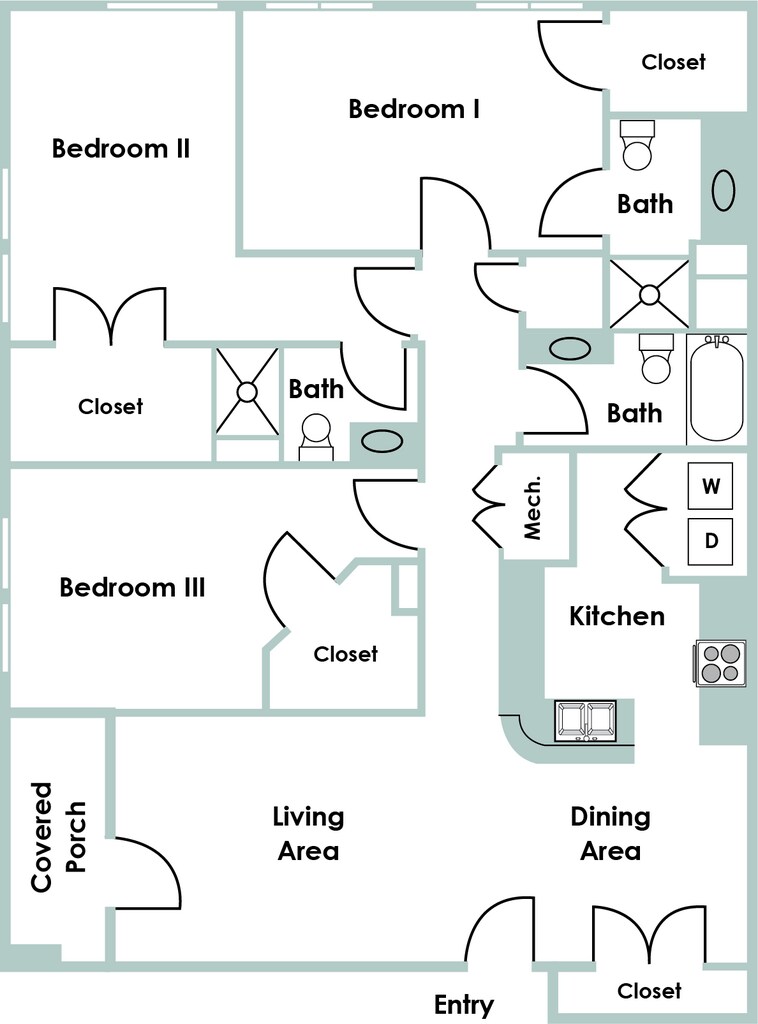 1 Dormitorio, 1 Baño, 728 pies²Disponible AhoraGalería del Modelo