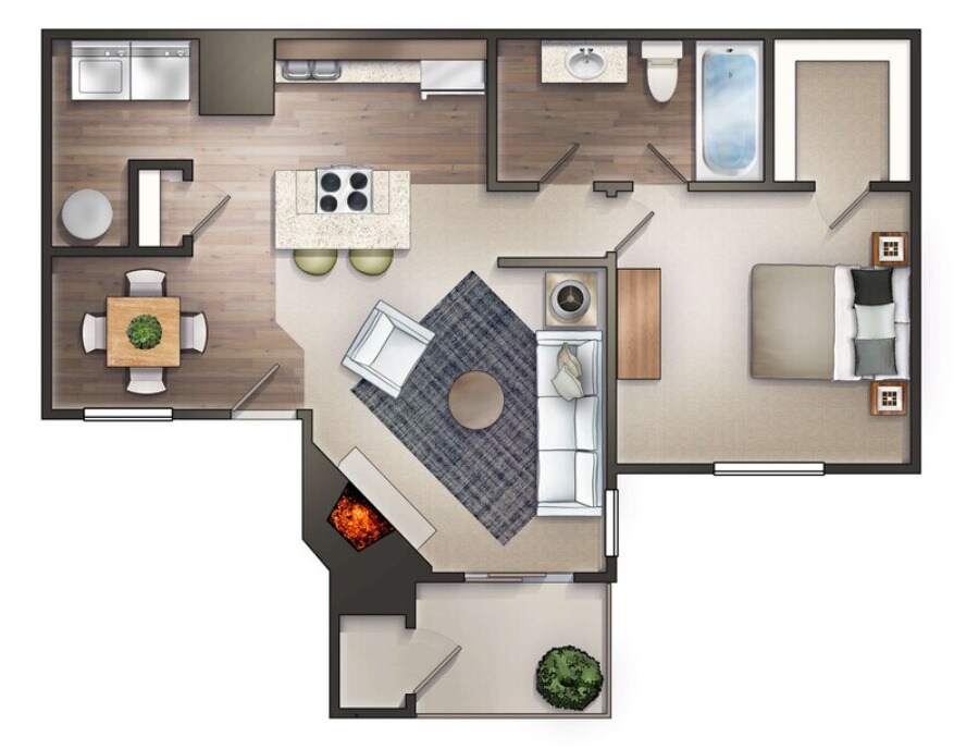 1 Dormitorio, 1 Baño, 700 pies²Disponible AhoraGalería del Modelo