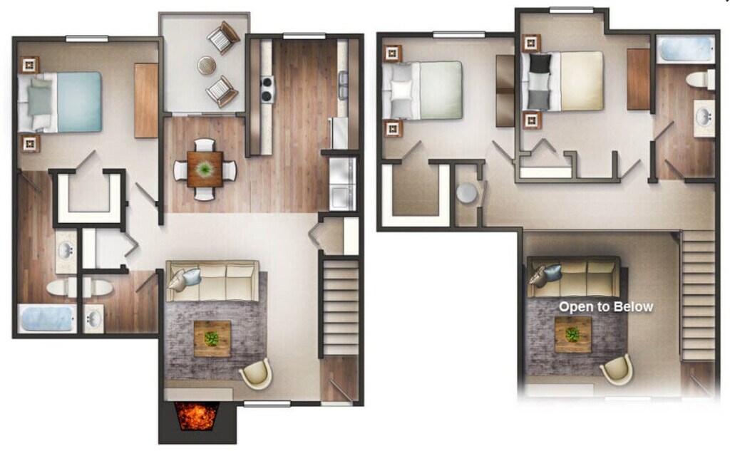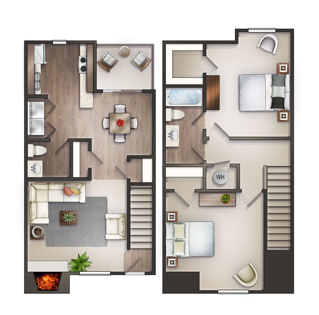 Modelo de apartamento: 2BR/1.5BA Townhome$1,2502 Dormitorios, 1.5 Baños, 925 sq ftDisponible AhoraPlanosFotos![]()