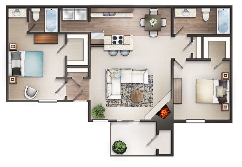 2BR/2BA Garden - Plano 1 2BR/1.5BA Townhome