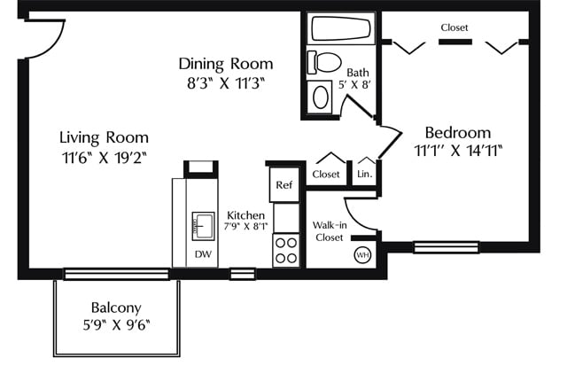 Modelo de apartamento: 1 BR1 Dormitorio, 1 Baño, 680 sq ftNo DisponiblePlanosFotos![]()