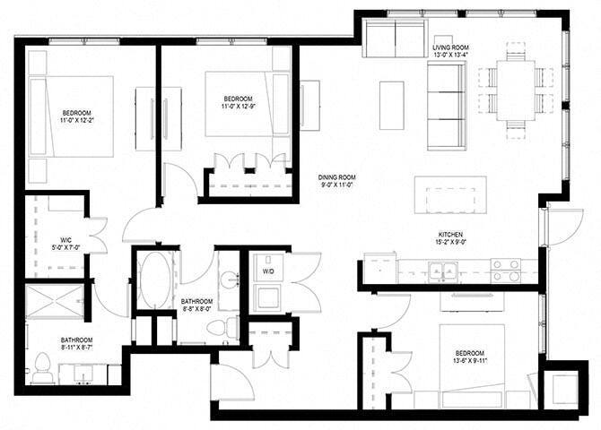 Modelo de apartamento: One Bedroom - DDesde $1,1501 Dormitorio, 1 Baño, 723 sq ftDisponible Ahora![]()