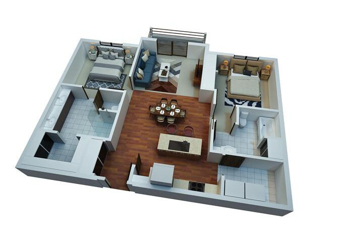 1 Dormitorio, 1 Baño, 850-973 pies²Disponible AhoraGalería del Modelo