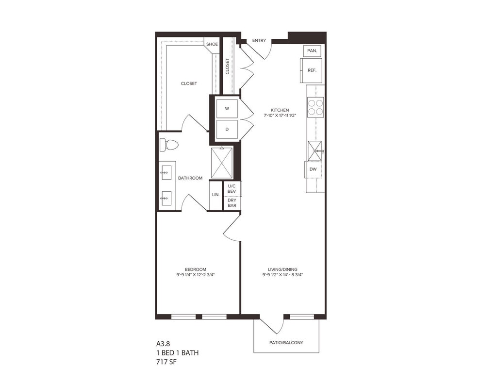 A3.8 - Plano 1 Unidad de apartamento: 421Modelo de apartamento: A3.81 Dormitorio, 1 Baño, 717 sq ftDisponible March 25, 2026A5.1