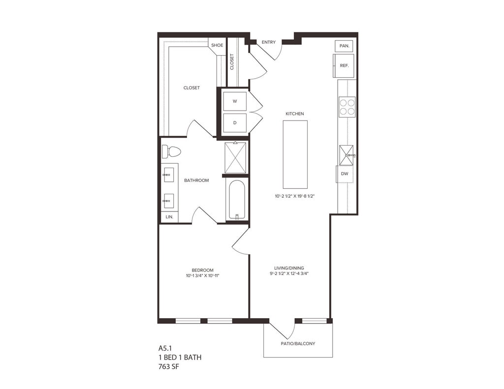 A5.1 - Plano 1 Unidad de apartamento: 502Modelo de apartamento: A5.11 Dormitorio, 1 Baño, 763 sq ftDisponible April 7, 2026A1.4