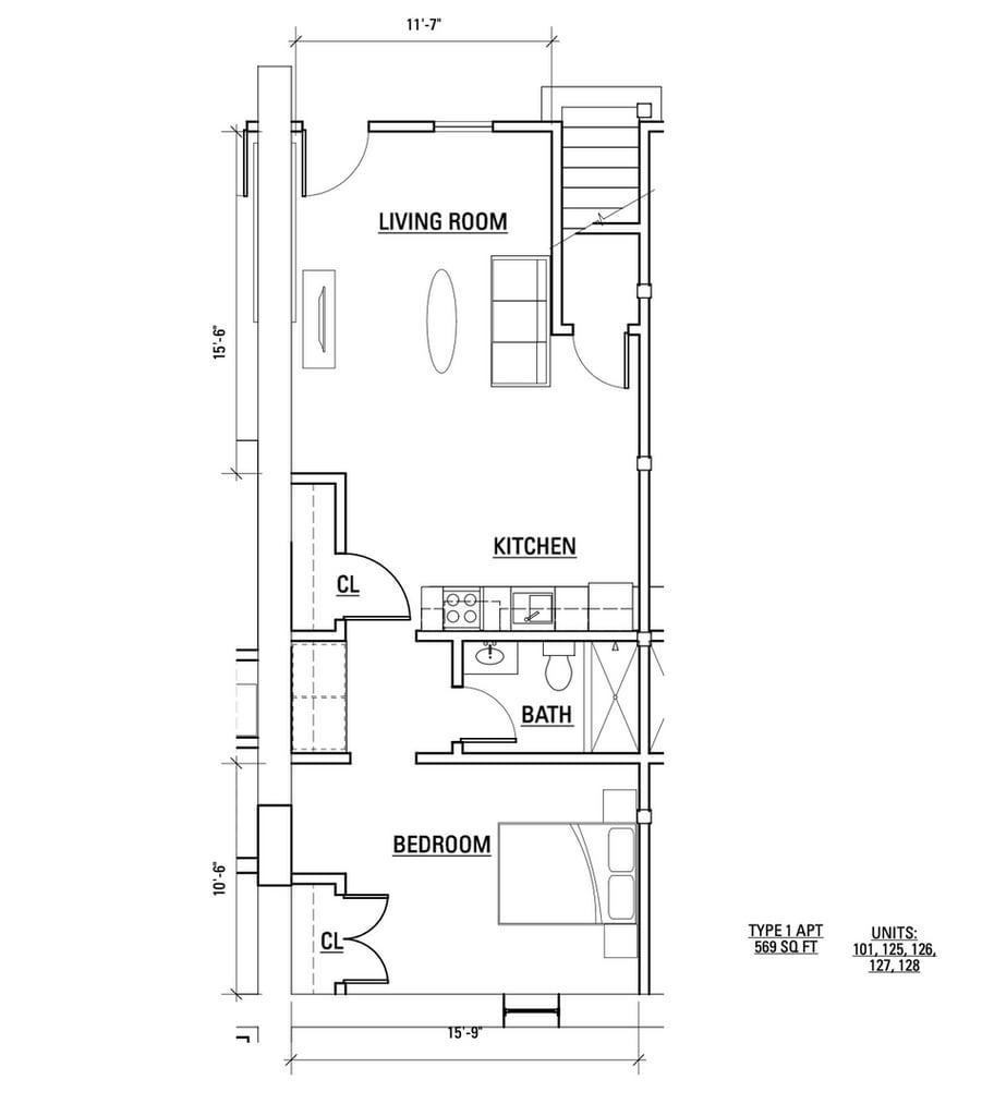 1 Dormitorio, 1 Baño, 500-615 pies²Disponible AhoraGalería del Modelo
