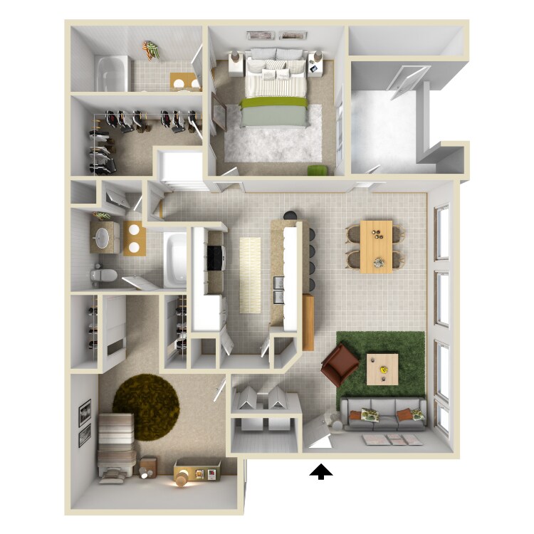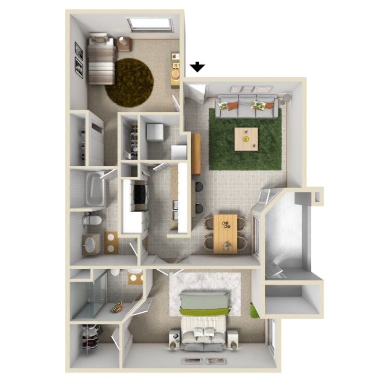 Modelo de apartamento: SundanceDesde $1,3981 Dormitorio, 1 Baño, 768 sq ftDisponible Ahora![]()