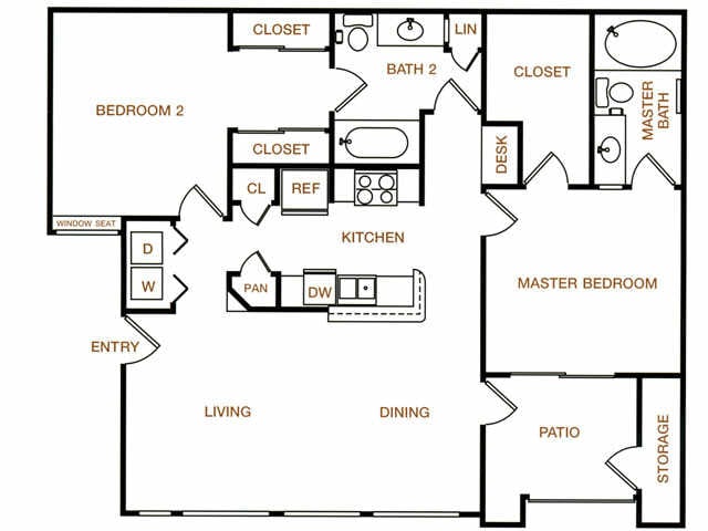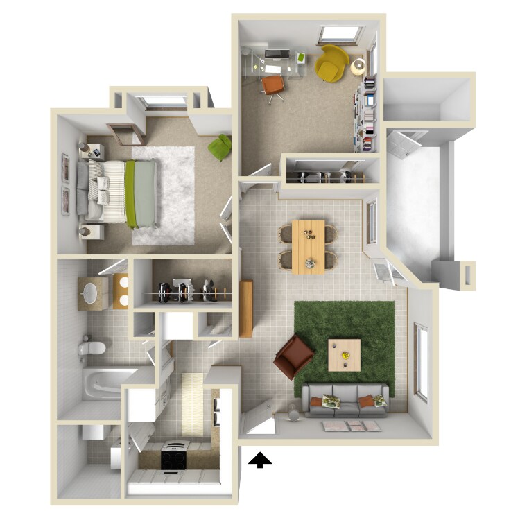 Modelo de apartamento: AspenLlame para Precios1 Dormitorio, 1 Baño, 811 sq ftNo Disponible![]()