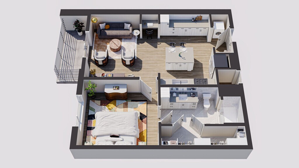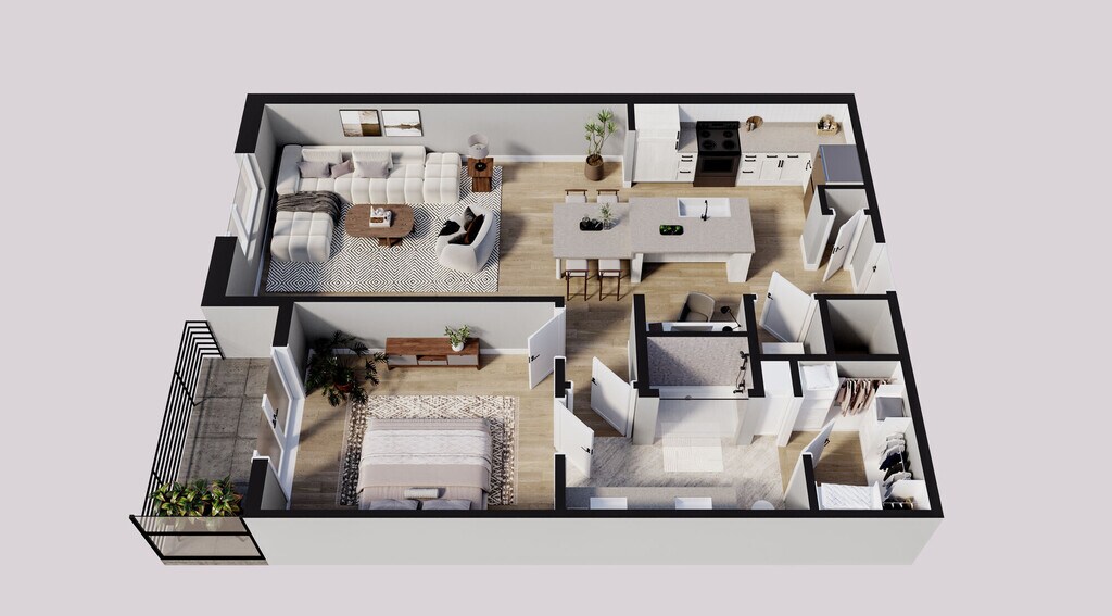 1 Dormitorio, 1 Baño, 619 pies²Disponible AhoraGalería del Modelo
