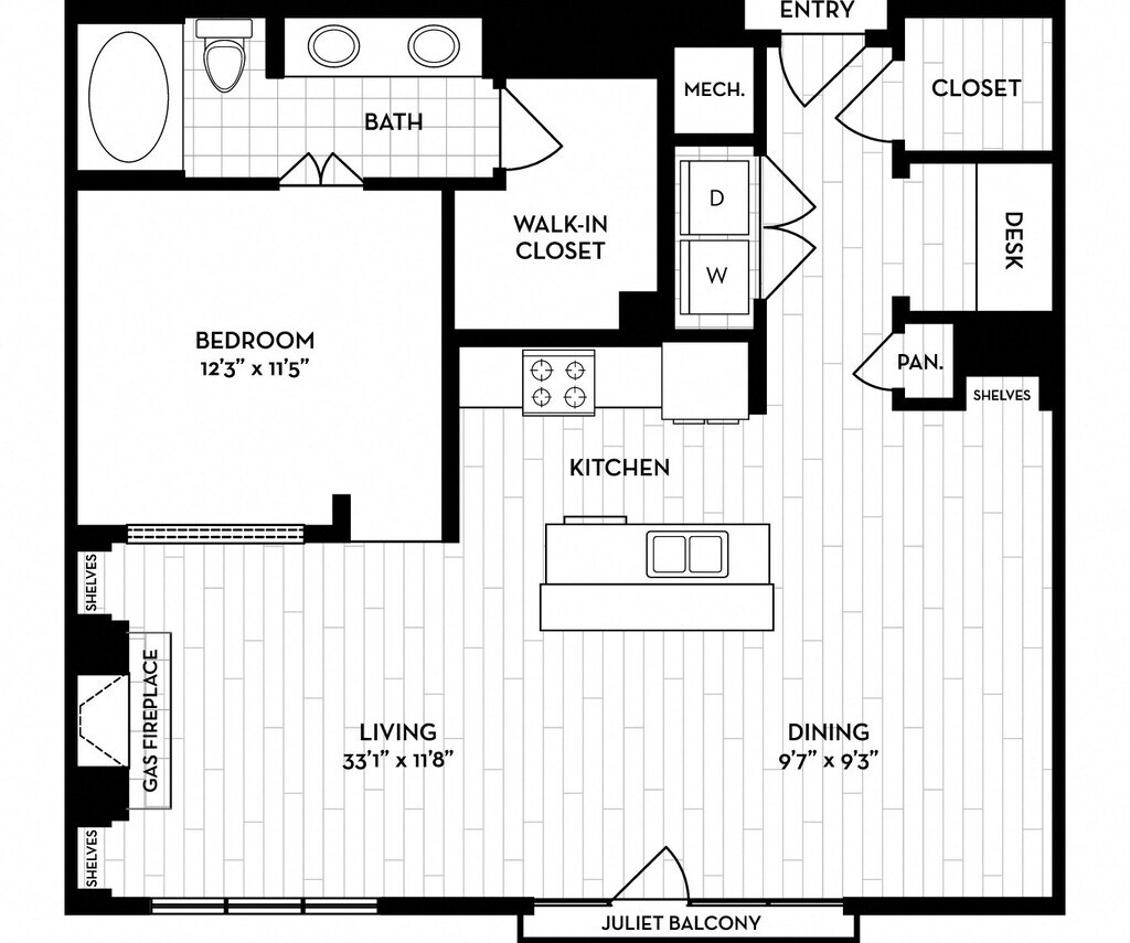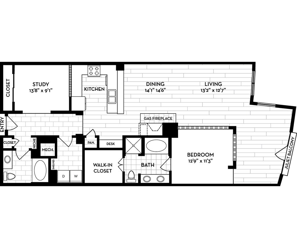 Estudio, 1 Baño, 680 pies²Disponible AhoraGalería del Modelo
