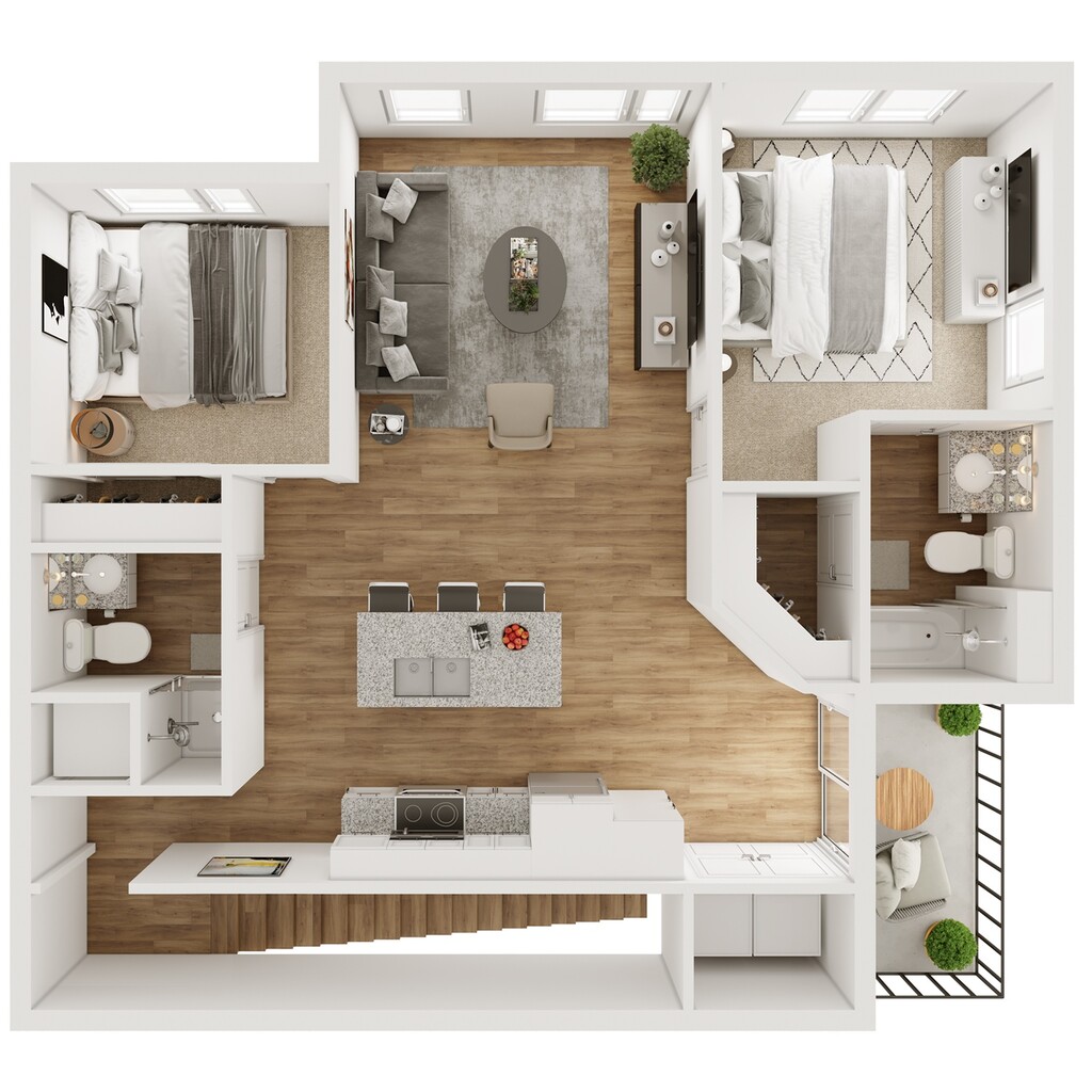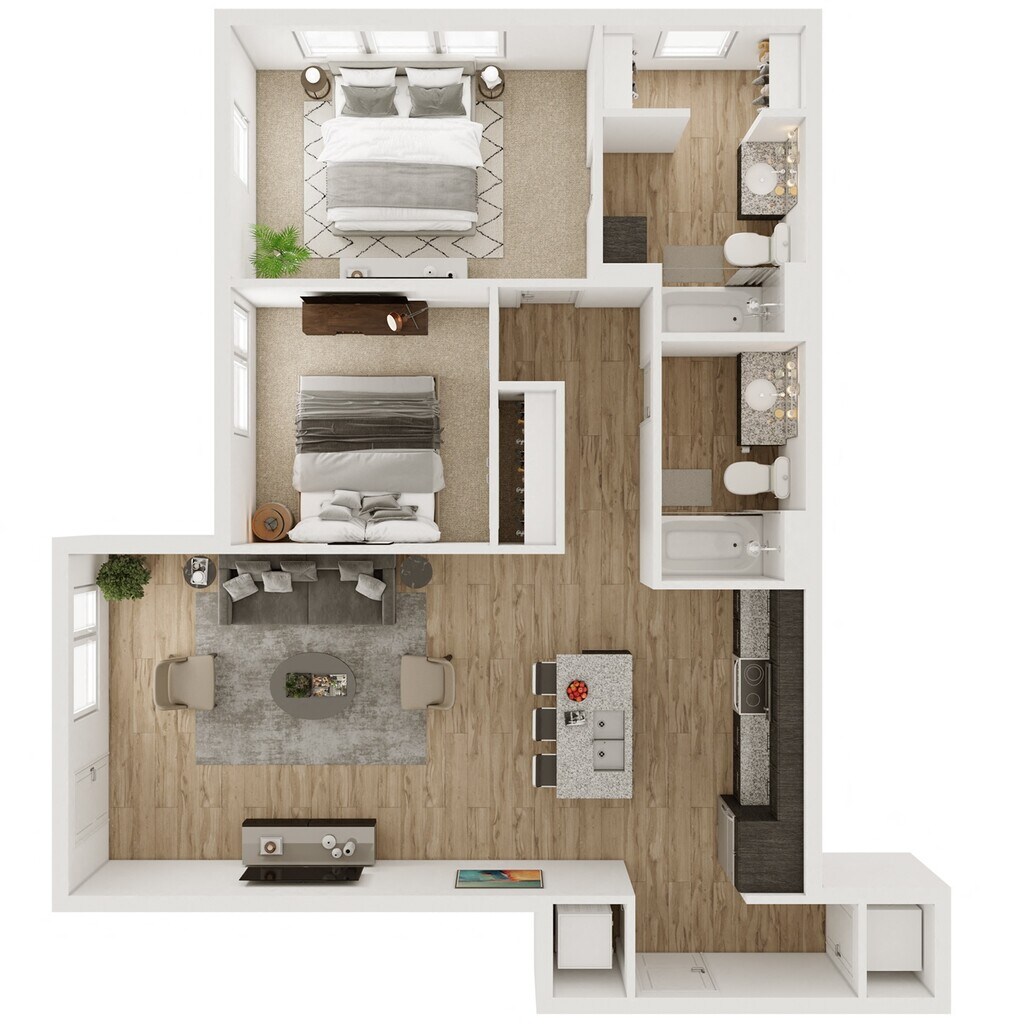 Modelo de apartamento: One Bedroom DiamondDesde $1,3951 Dormitorio, 1 Baño, 723-755 sq ftDisponible November 21, 2025![]()