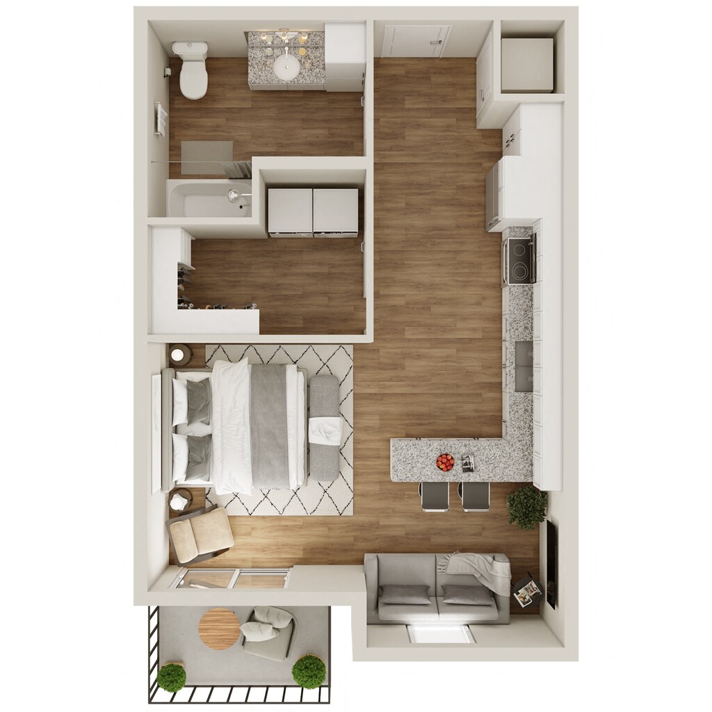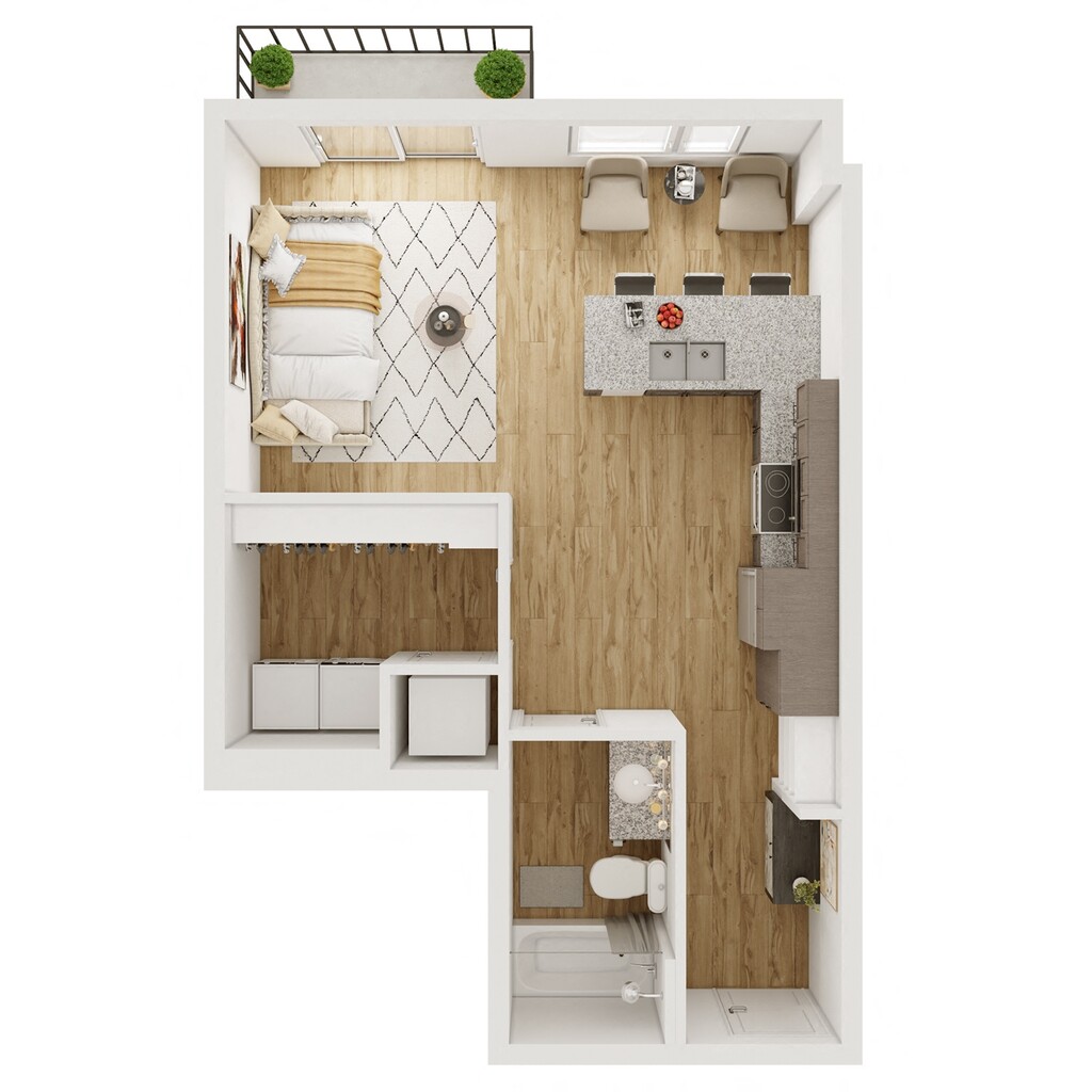 Studio Platinum - Plano 1 Unidad de apartamento: H113Modelo de apartamento: Studio Platinum$980Estudio, 1 Baño, 569 sq ftDisponible December 7, 20251 Dormitorio