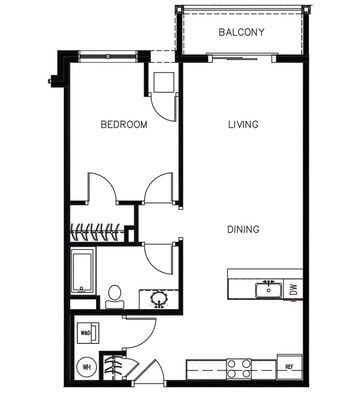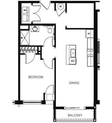Modelo de apartamento: The Midwestern$1,9801 Dormitorio, 1 Baño, 753 sq ftNo DisponibleThe Midwestern - Plano 1 The Breman