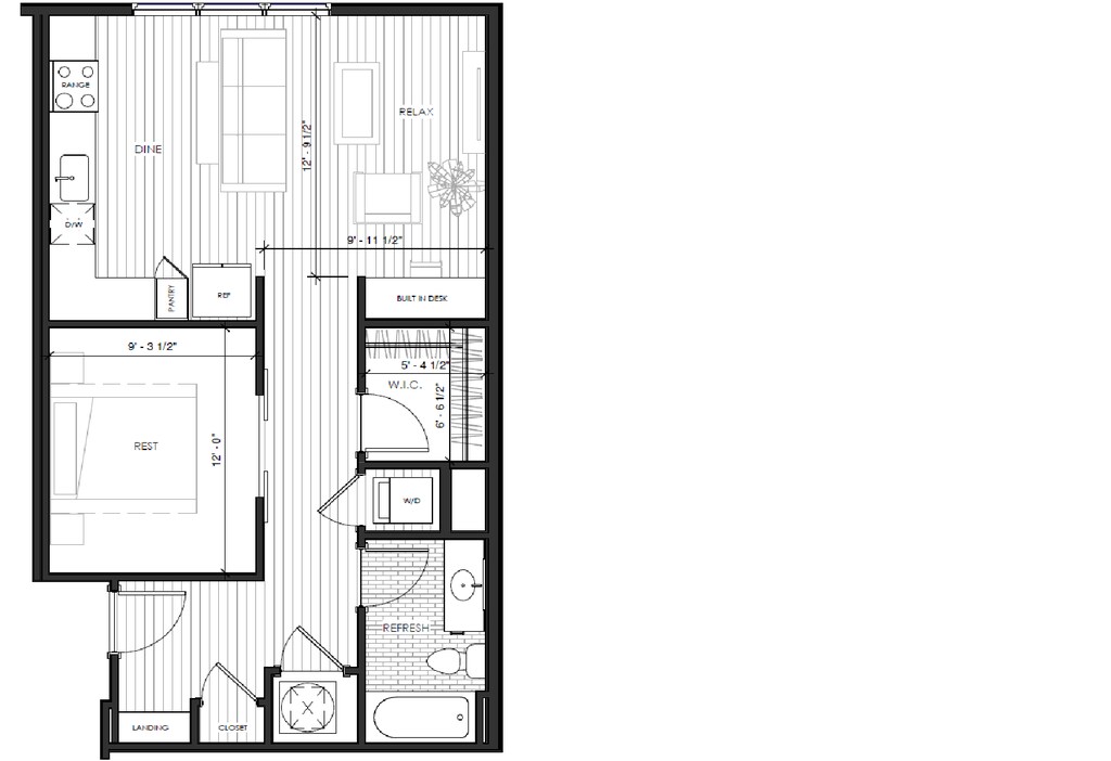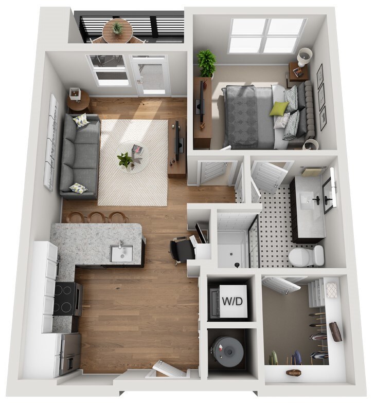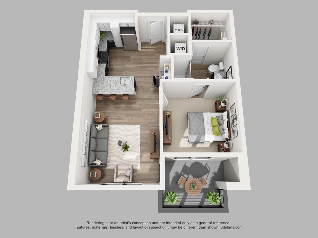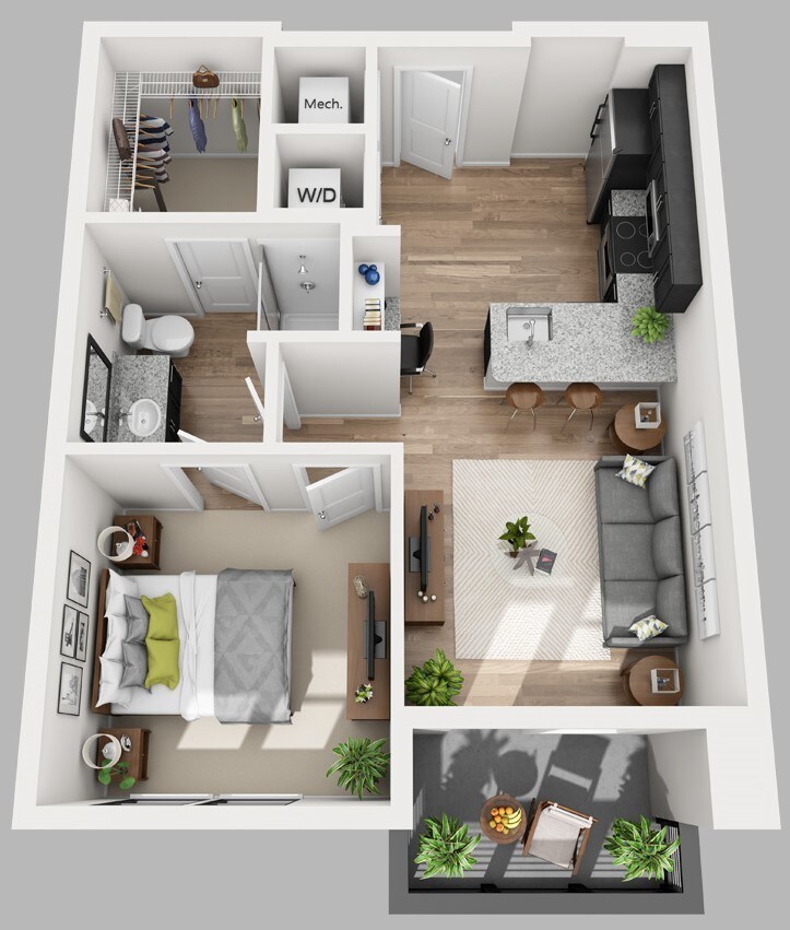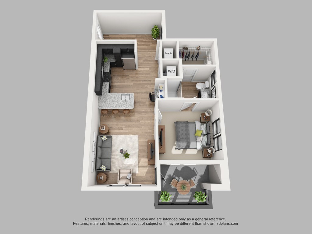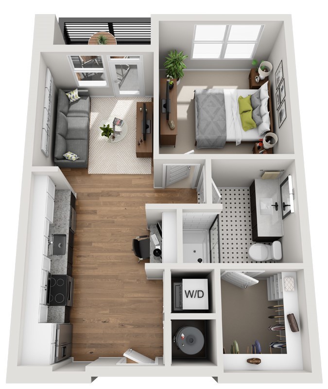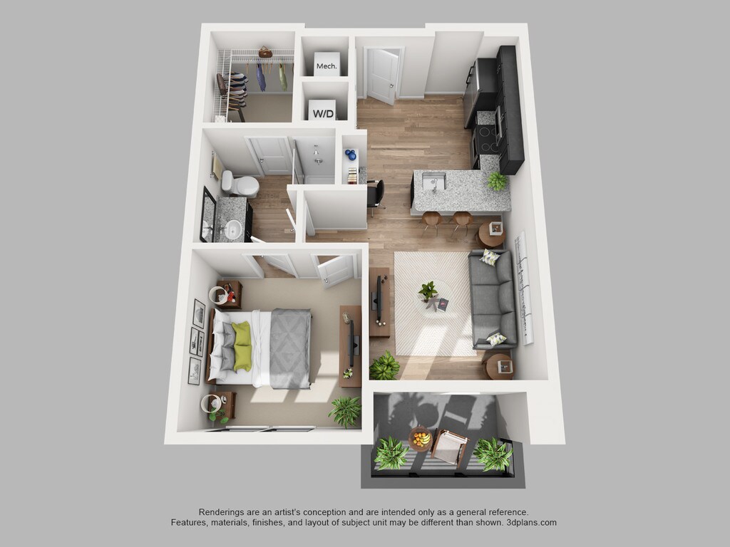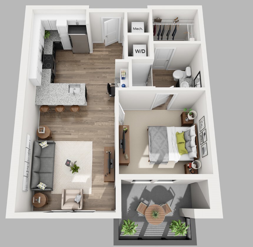 1 Dormitorio, 1 Baño, 620 pies²Disponible AhoraGalería del Modelo