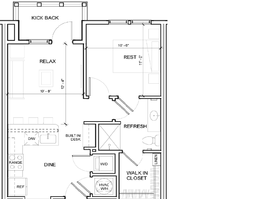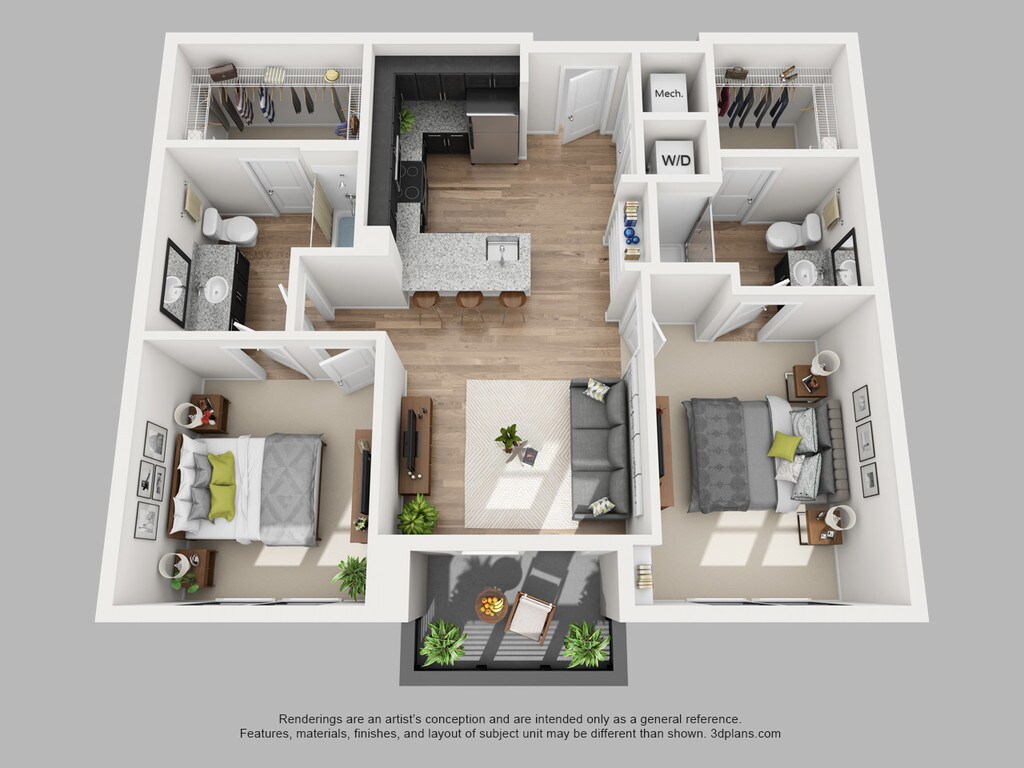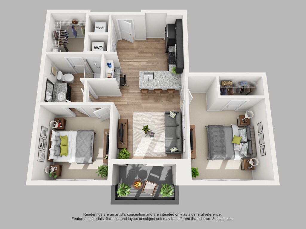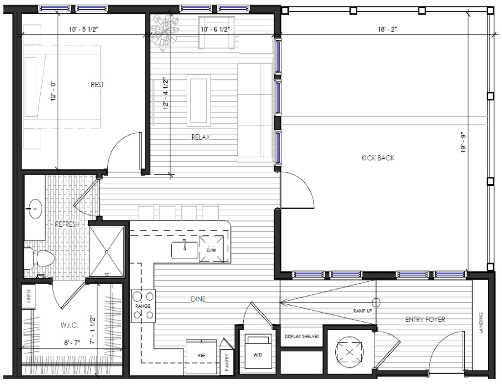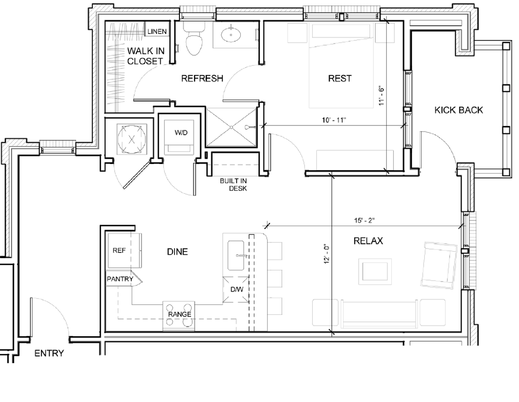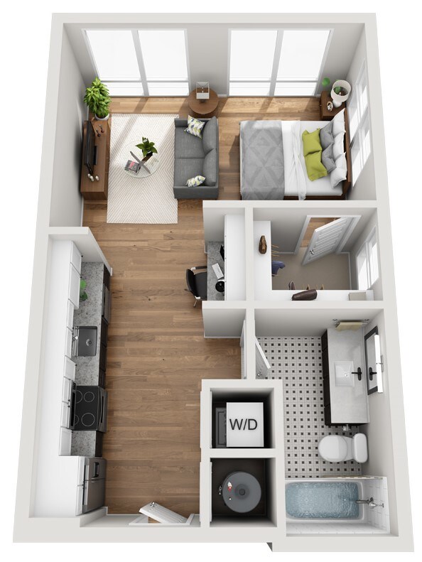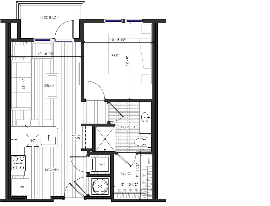 1 Dormitorio, 1 Baño, 620 pies²Disponible AhoraGalería del Modelo