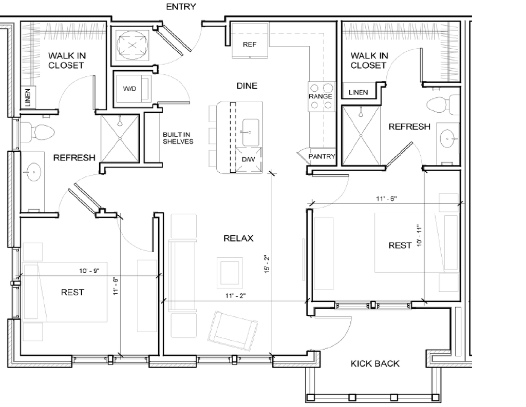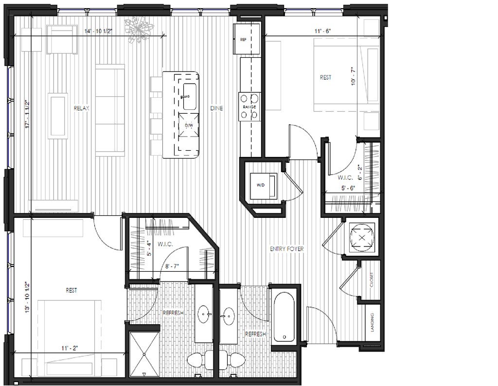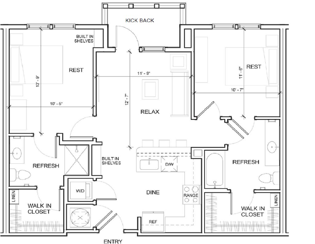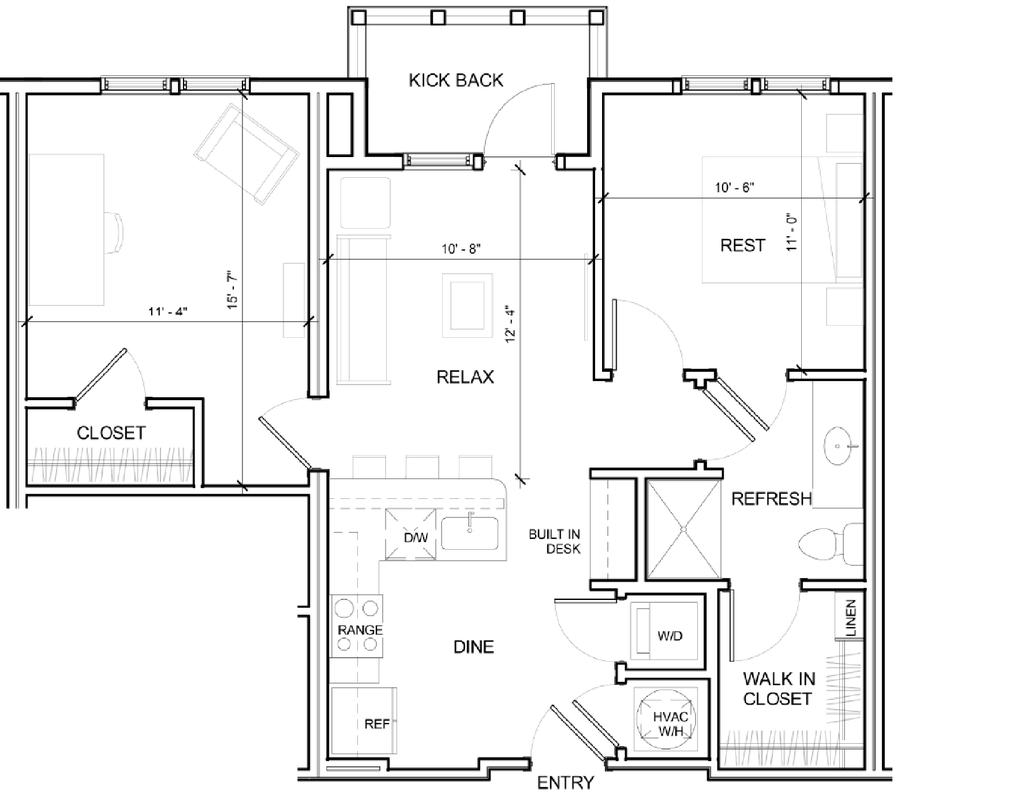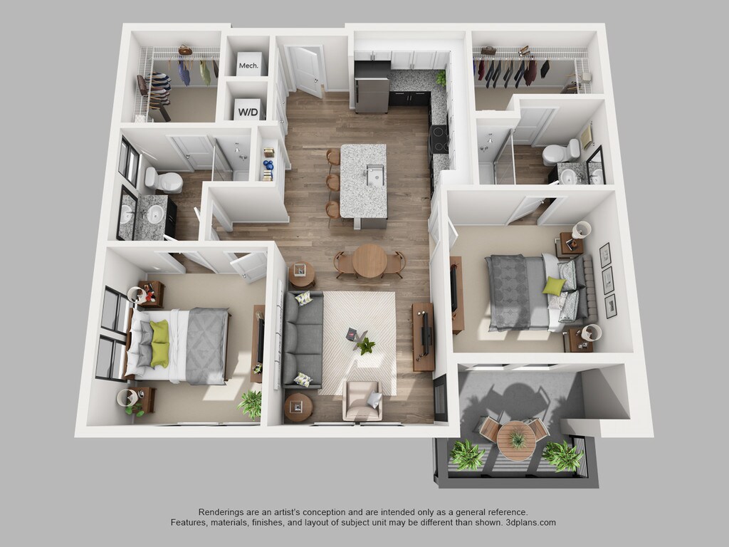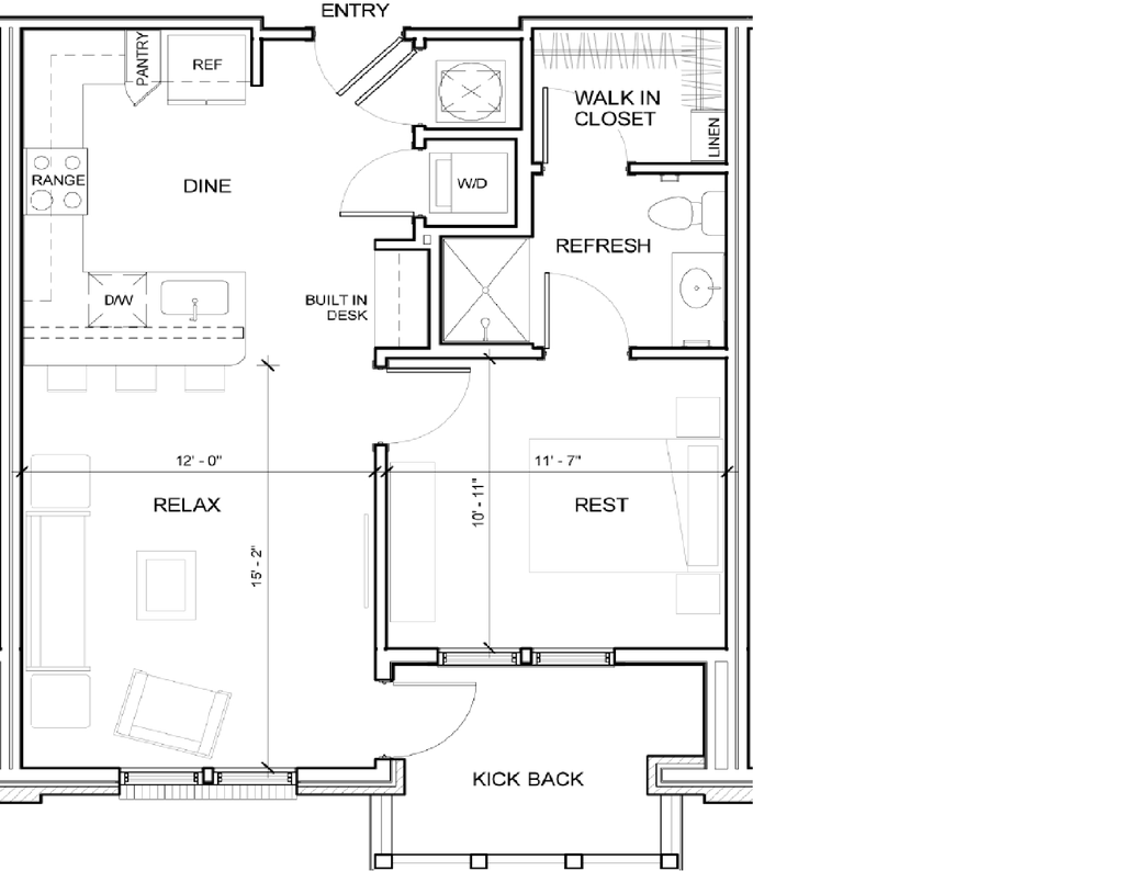 1 Dormitorio, 1 Baño, 620 pies²Disponible AhoraGalería del Modelo
