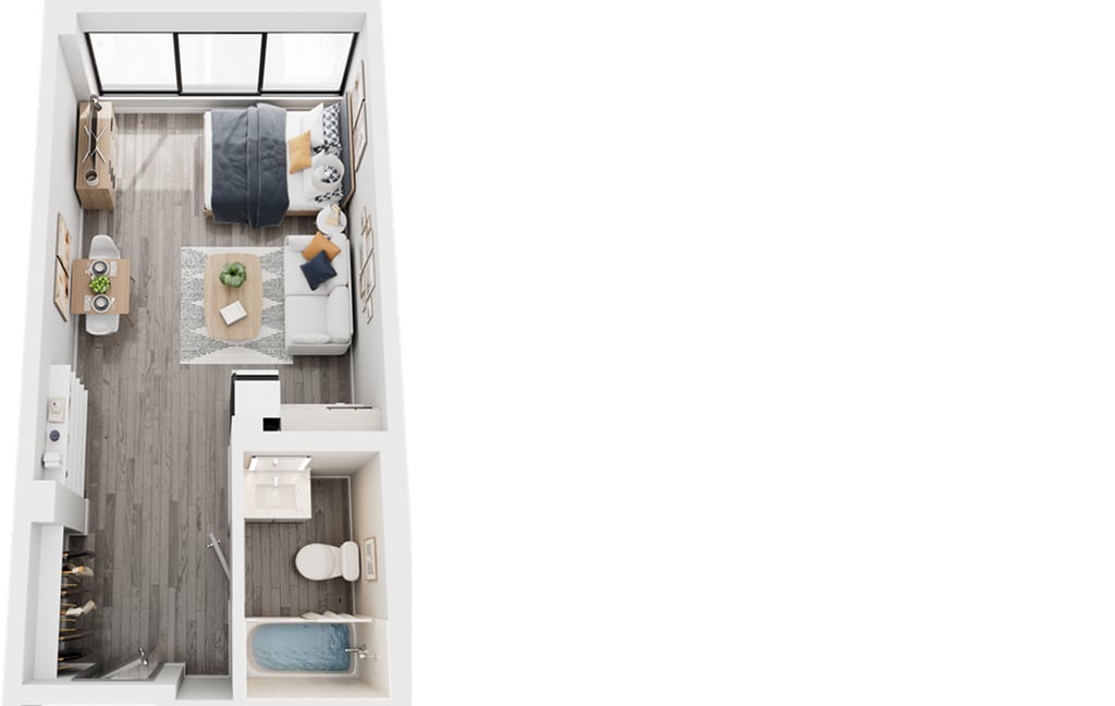 0BR/1.0BA - Imagen 10 Unidad de apartamento: 807-ModelModelo de apartamento: 0BR/1.0BA$900Estudio, 1 Baño, 330 sq ftDisponible Ahora![]()