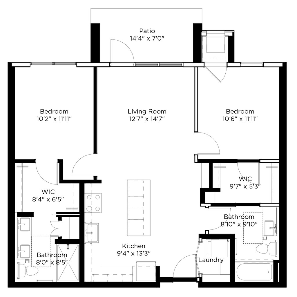 Modelo de apartamento: B1-C$1,8471 Dormitorio, 1 Baño, 709 sq ftDisponible May 1, 2026![]()