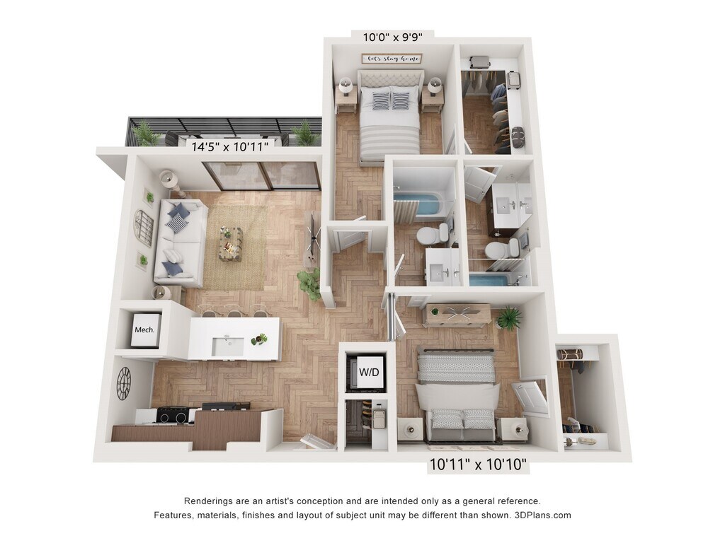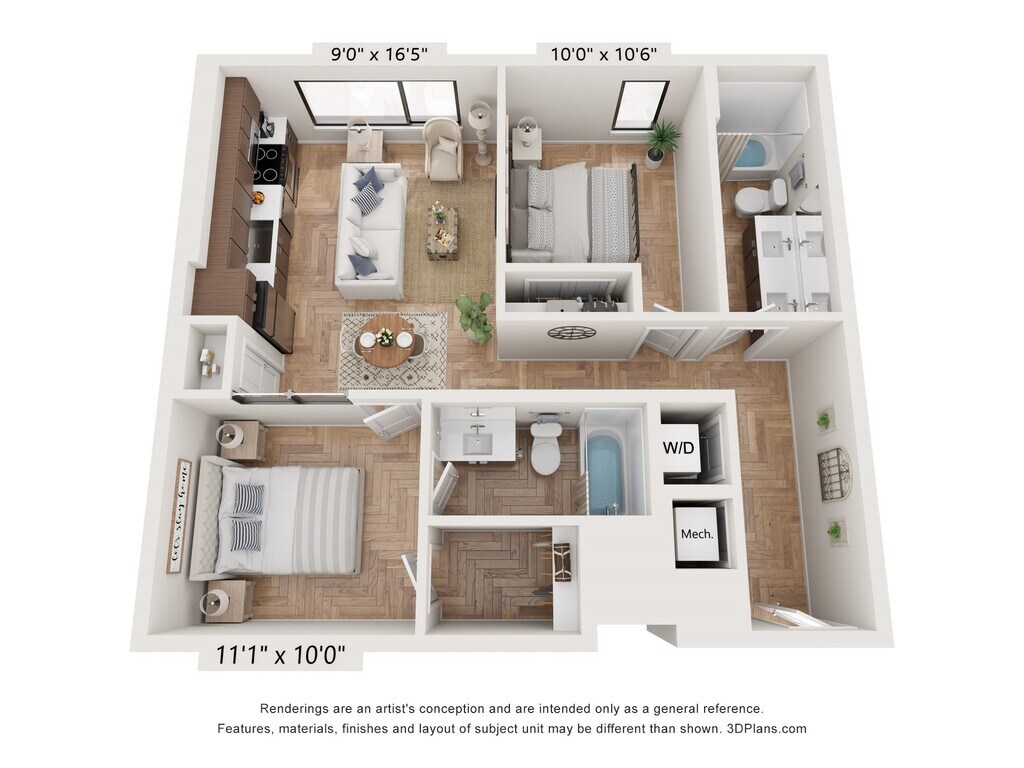Modelo de apartamento: The Everett2 Dormitorios, 2 Baños, 897-997 sq ftDisponible AhoraPlanosFotos![]()