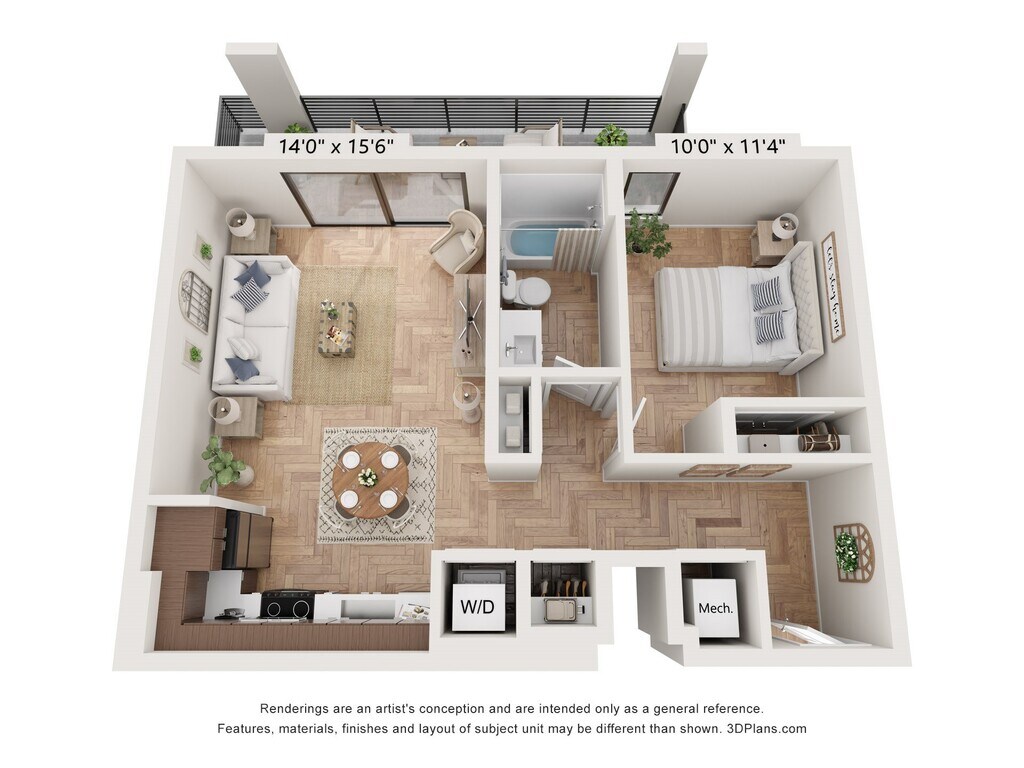 1 Dormitorio, 1 Baño, 591-621 pies²Disponible AhoraGalería del Modelo